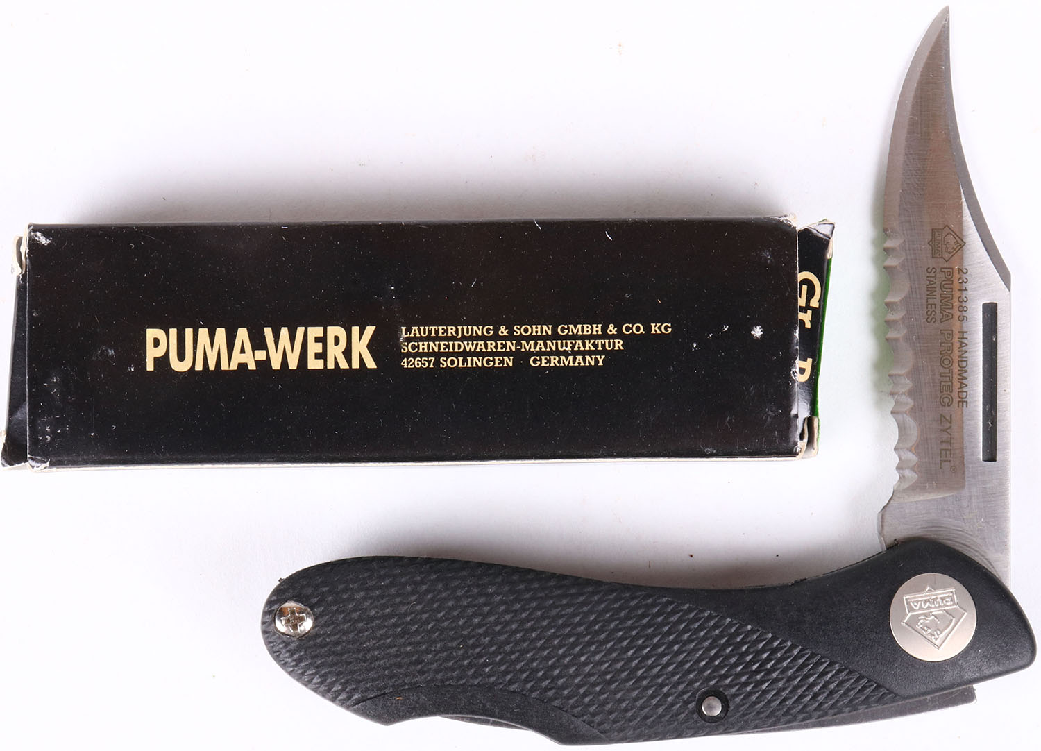 Puma folding knife, in orignal box, all bright and clean. Grade: MINT - Value: 10 to 60