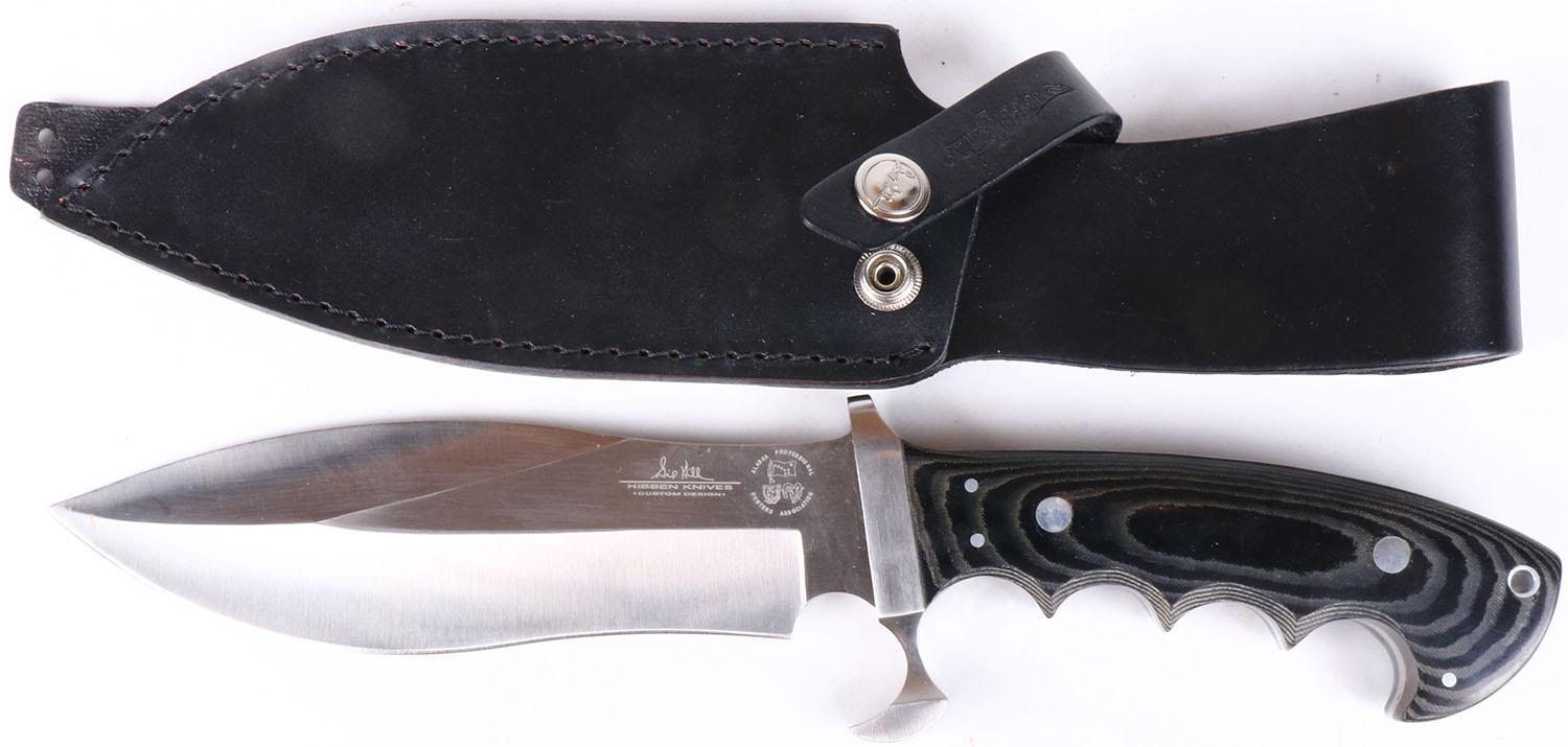 Hibben knife fixed blade knife, in sheath, all bright and clean. Grade: MINT - Value: 20 to 100