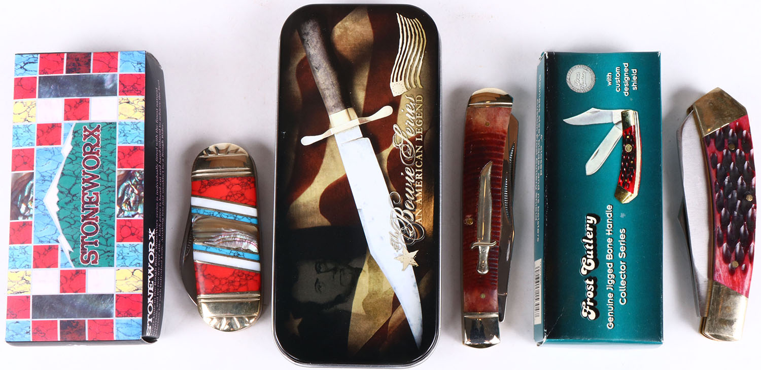 Lot of 3 knives, in orignal boxes, all bright and clean. Grade: MINT - Value: 10 to 60