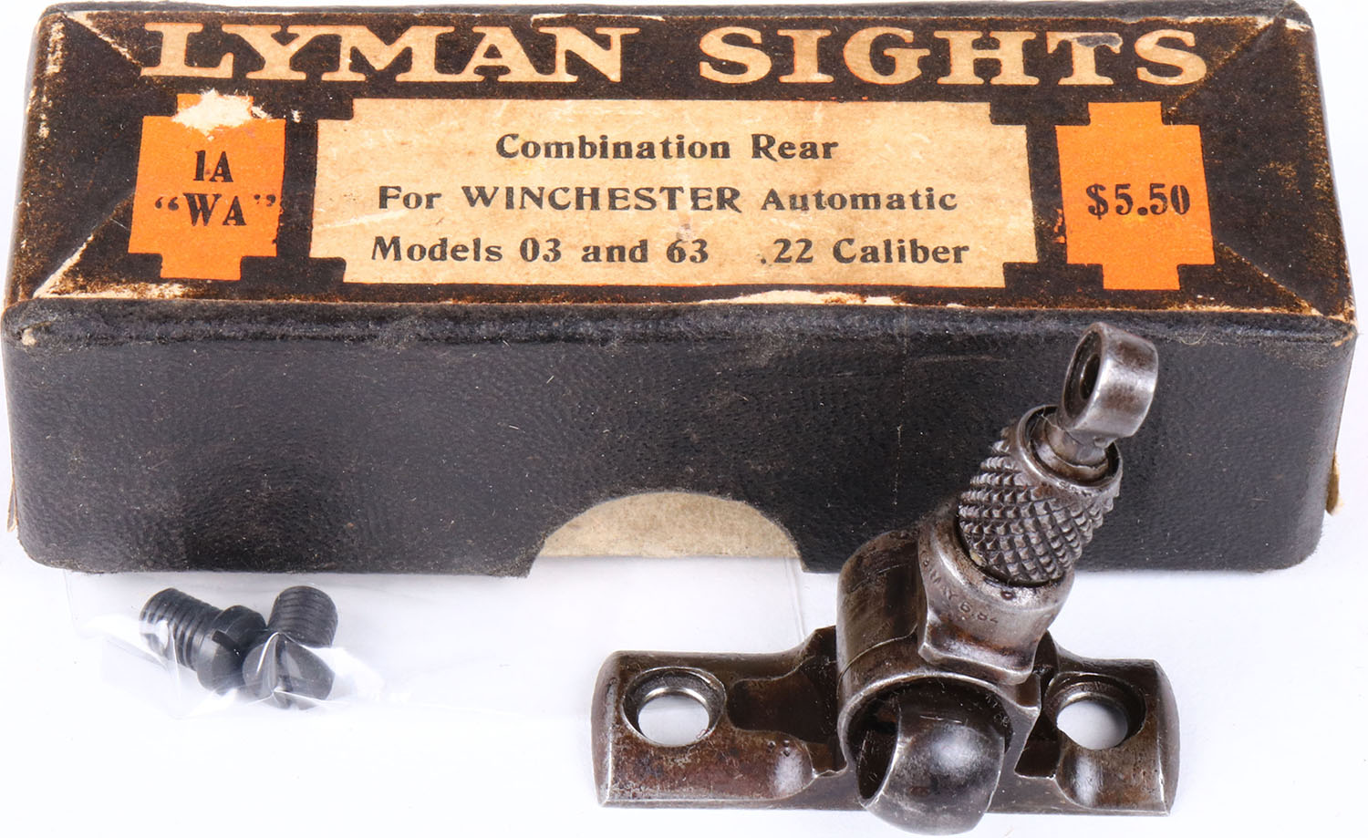 Lyman Tang sight No 1A WA for Win mod 03 & 63, in orignal box with screws & direction sheet. Grade: Very Good ++ - Value: 20 to 80