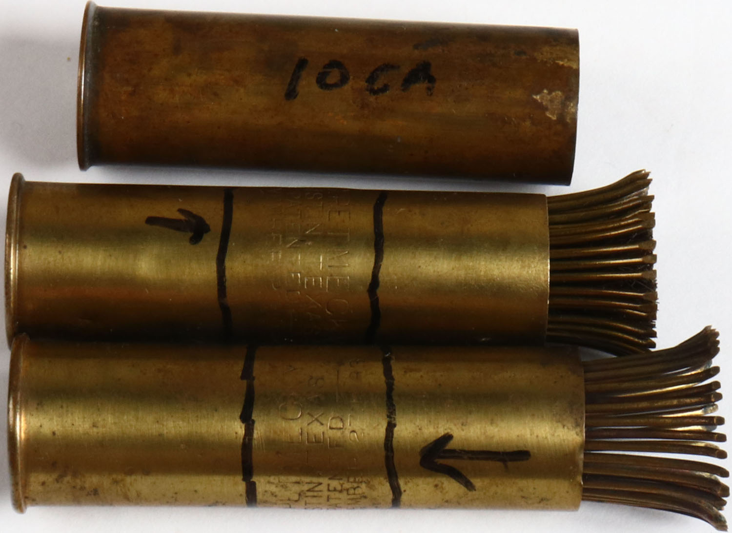 Lot of 3 Antique brass shotshell cleaner, 2 marked ''J.C. PETMECKY'', 10 ga.. Grade: Excellent - Value: 10 to 60