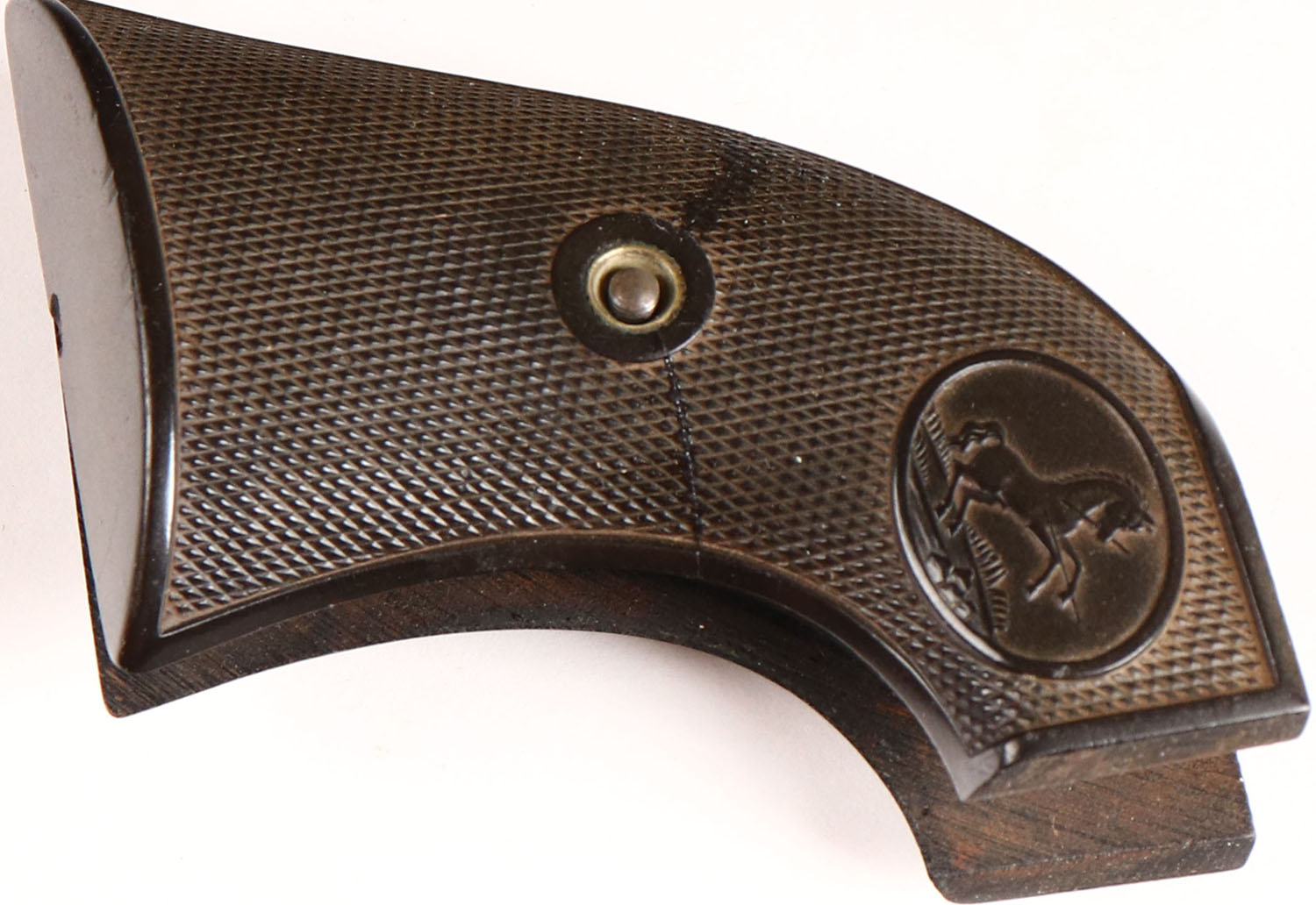 Colt pistol grips, one is cracked and repaired. Grade: Very Good - Value: 10 to 100
