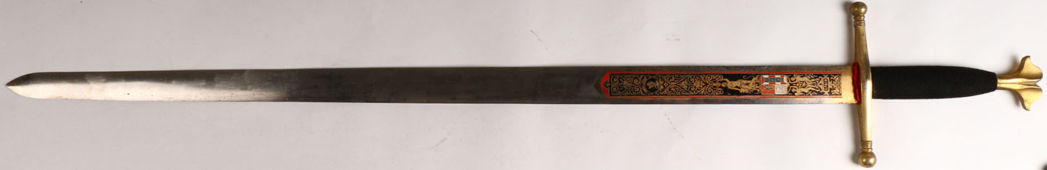 Extremely large decorative sword, 50'' OAL. Grade: Very Good ++ - Value: 20 to 200