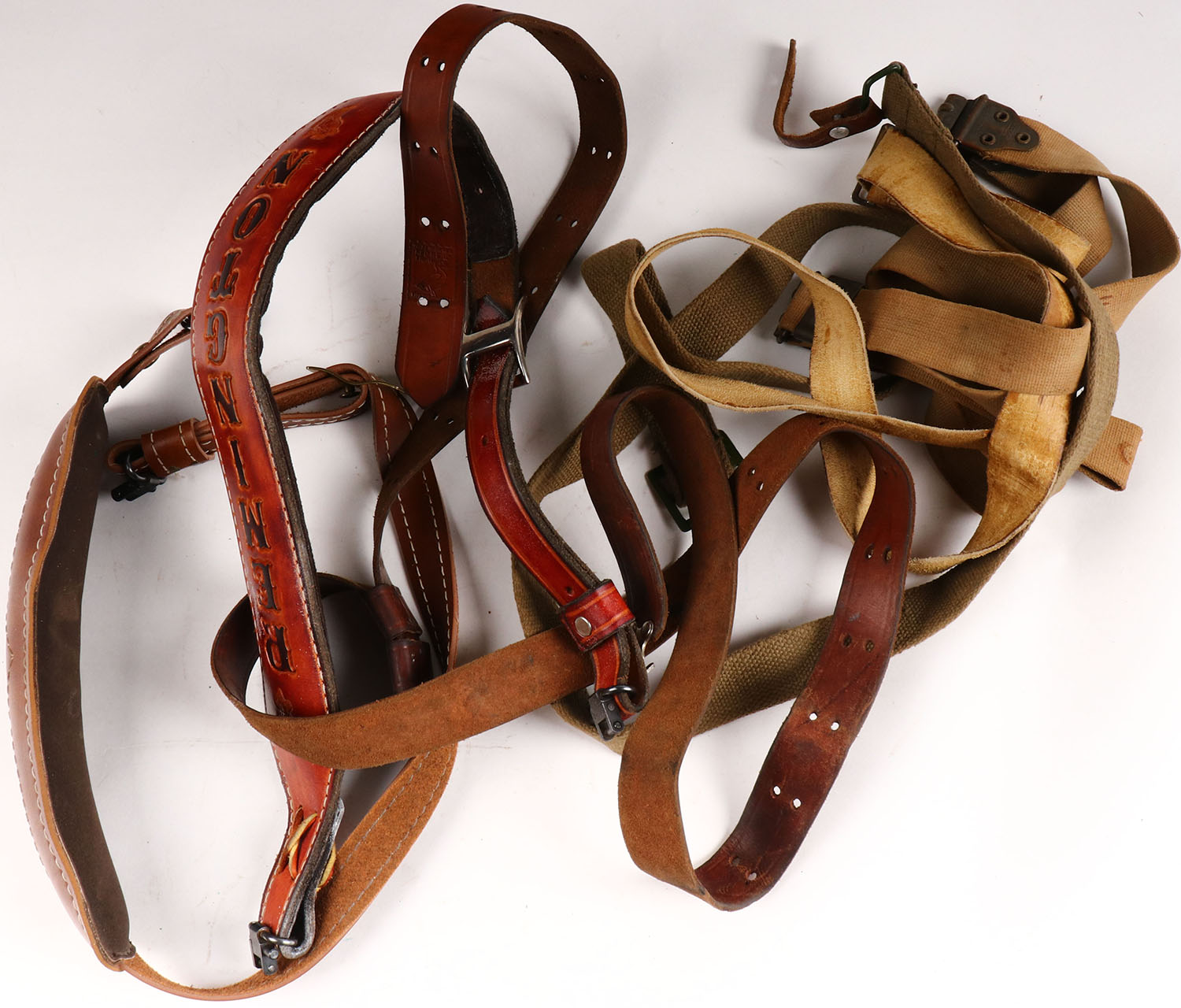 Large lot of leather and cloth rifle slings. Grade: Very Good ++ - Value: 4 to 40