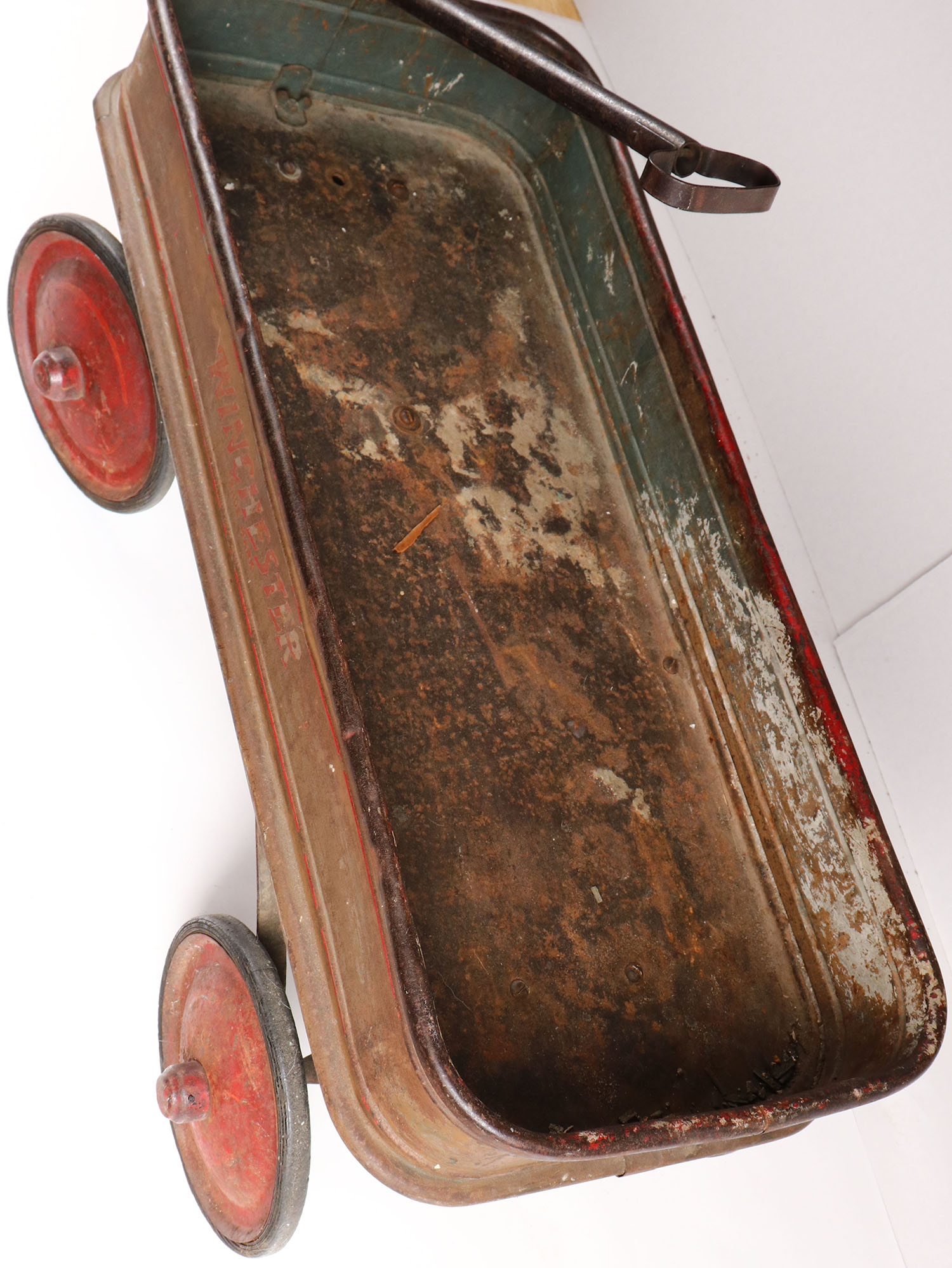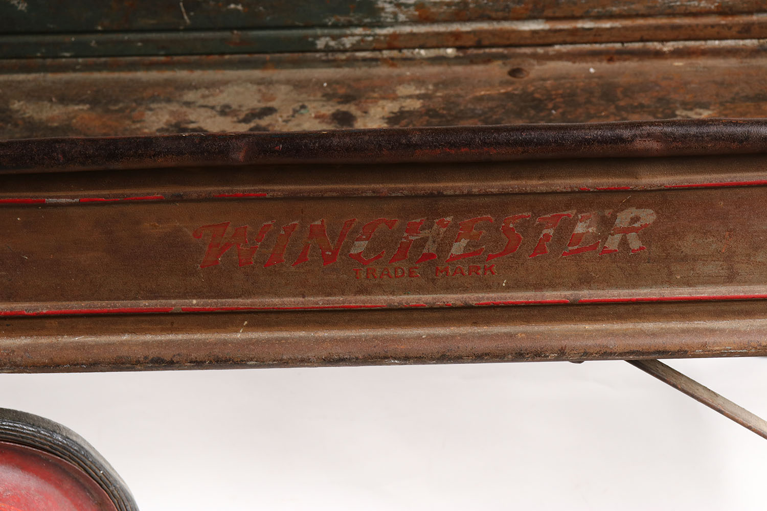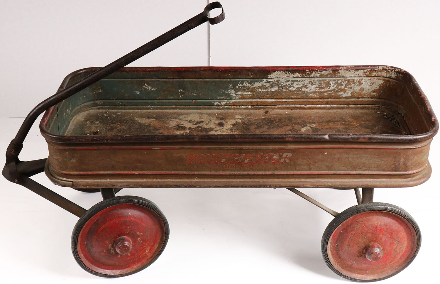 Rare! Winchester wagon, 35'' OAL, has rust but still functions and wheels turn well. Grade; Very Good - Value: 50 to 400