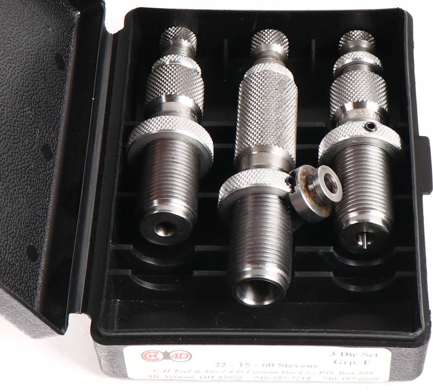 C-H Tool & Die reloading dies, 22-15-60 stevens., in original box. Grade: Excellent - Value: 10 to 60