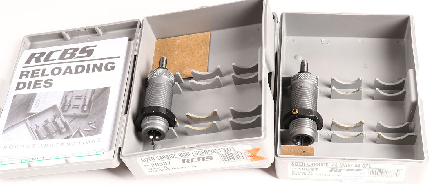 Lot of 2 RCBS reloading dies, 9 mm, Luger and .44 mag./.44spl., in original box. Grade: Excellent - Value: 16 to 60