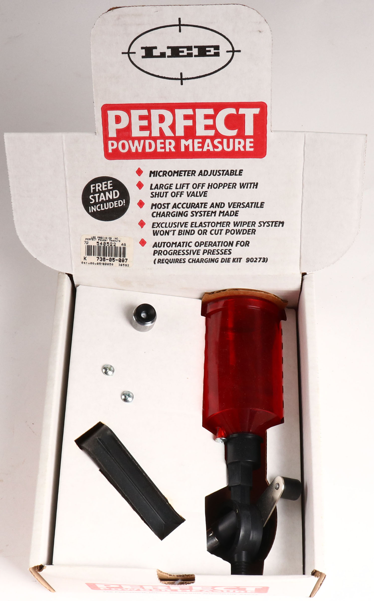 Lee powder measurer, in orignal box. Has age soiling. Grade: Excellent - Value: 4 to 40