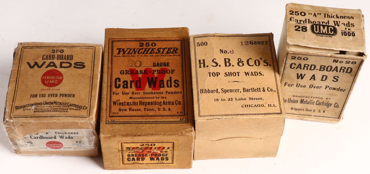 Lot of 4 various shot wads boxes. Grade: Very Good ++ - Value: 6 to 60
