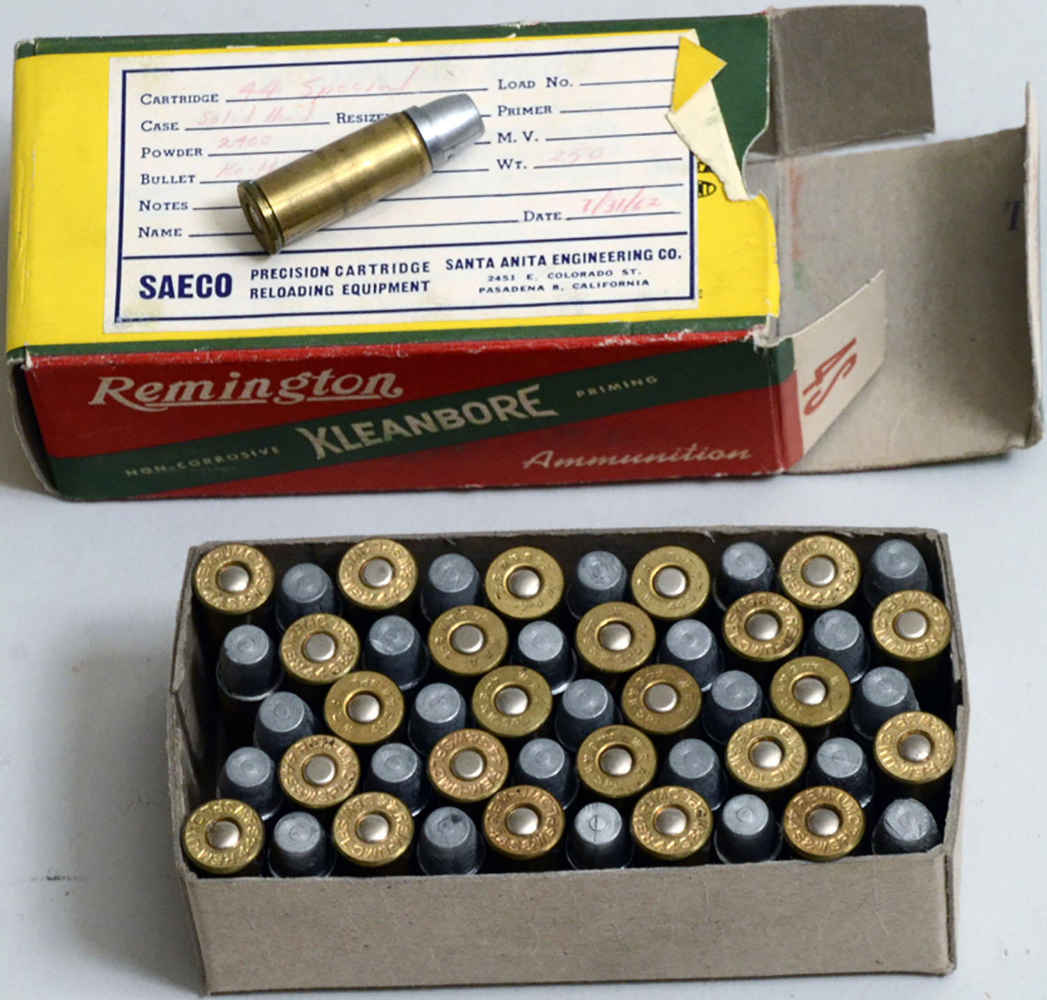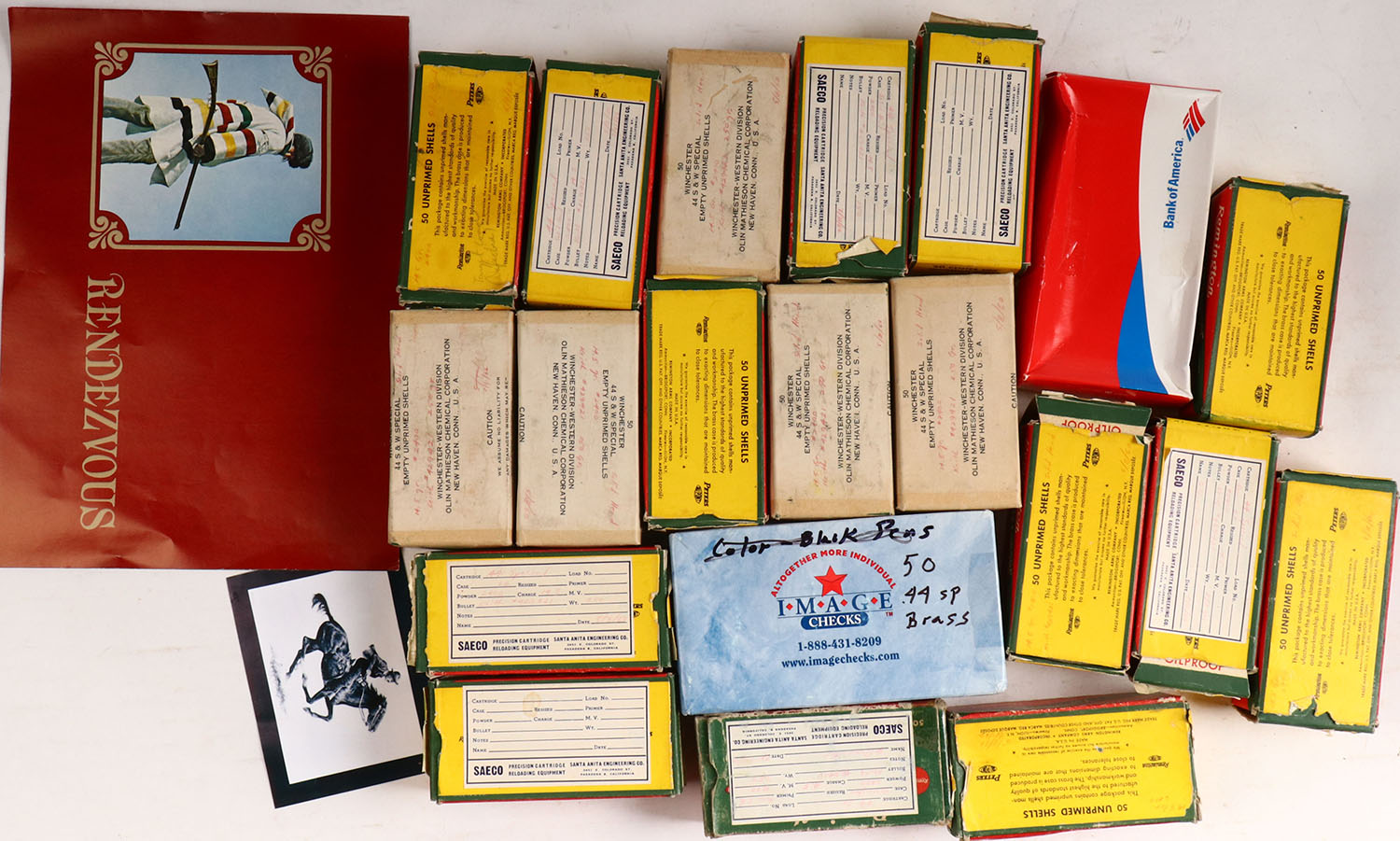 Lot of Bargains, Lot of .44sp Pistol Bargains: (7) 50-round boxes of Elmer Keith hand load: Lyman #429421 cast 250 grain bullet with 17 gr Hercules 1200 powder. (9) 50-round boxes of primed .44sp brass. (2) 50-round boxes of .44sp spent brass, + 2 misc. boxed 44sp items. These items CAN NOT BE RETURNED - Value: 2 to 500