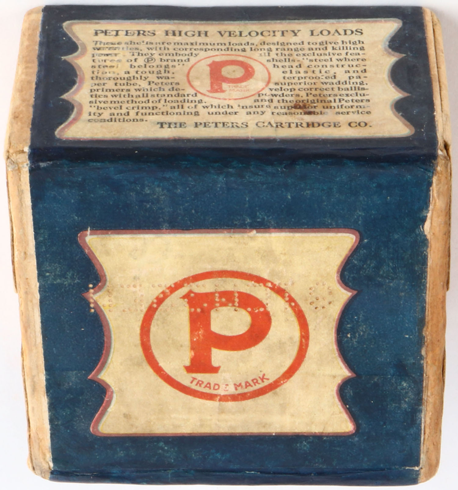 Peters Cart. Co., HIGH GUN, 16ga, 2pc., FULL & Professionally RESEALED/Restored, shot size 4CH Shot, buff box with multi colored picture of Snipe, Loading: No. N 1584, 22 Grs., 1 1/8 Oz. No. 4 Ch Shot, Ballistite Smokeless, box has great color to label. * Grade: Excellent + - Value: 1000 to 5000