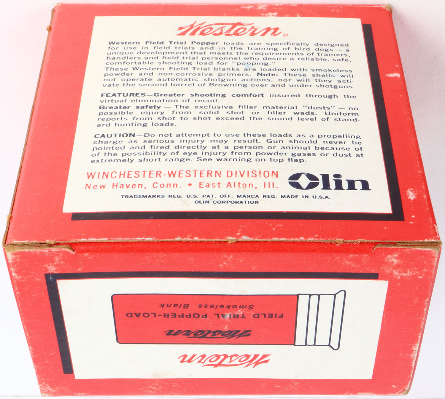 Western, POPPER-LOAD, 12ga., 1pc., Full, red, white & blue box, made for training dogs, Shells are excellent, great box. Grade: Excellent + - Value: 20 to 40