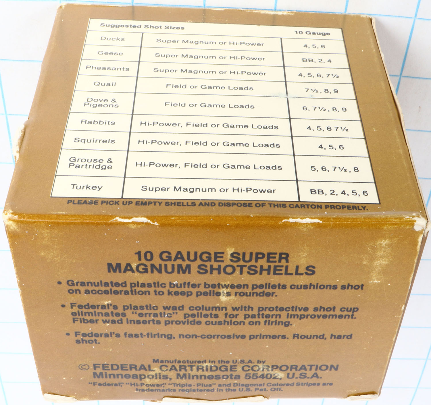 | Federal, 10ga., 1pc., Full, shot size BB Super Magnum, box is so...