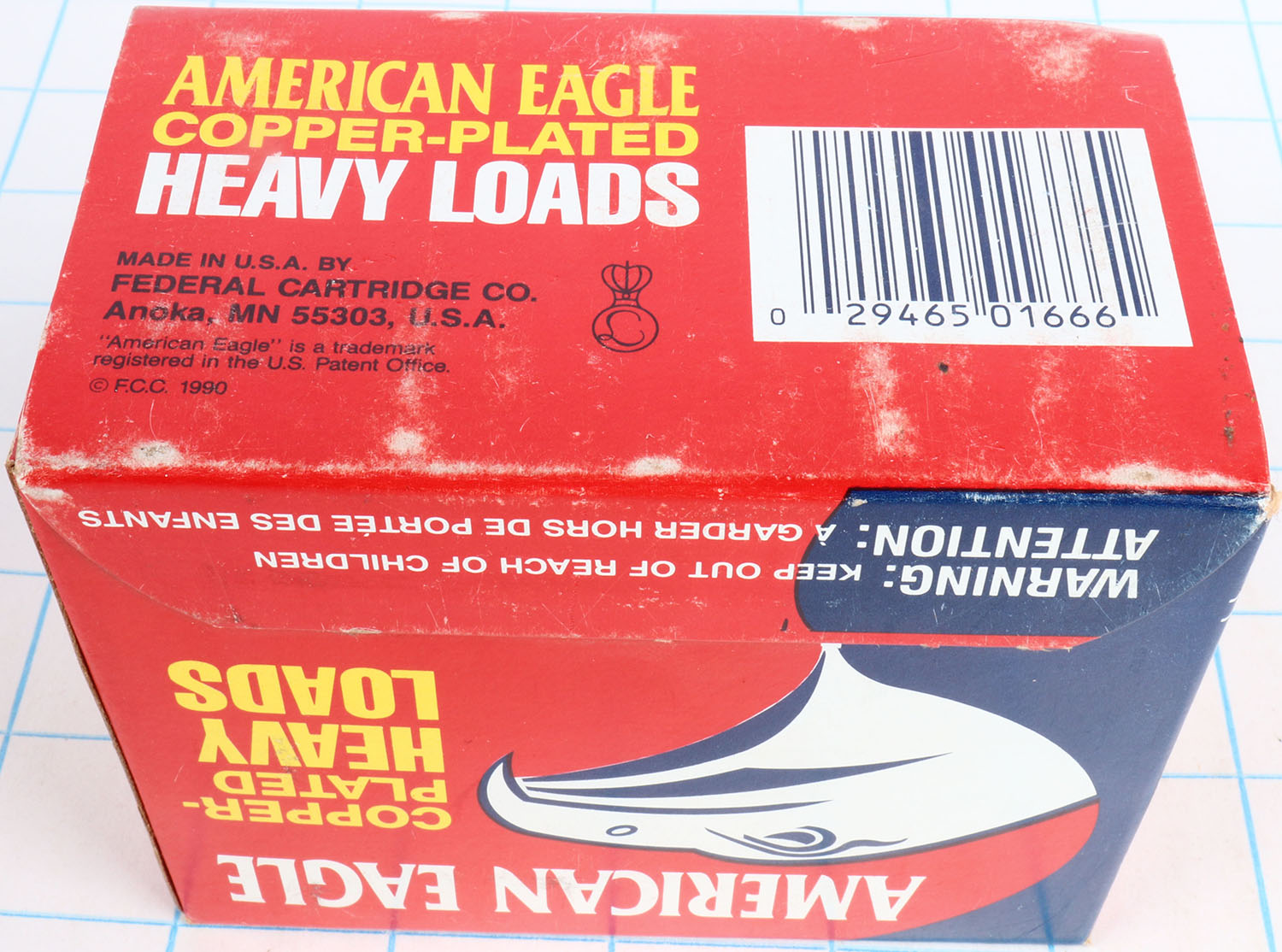 American Eagle, 12ga., 1pc., Full, shot size 6, 2 3/4'', multi-colored box, box is solid with great color, shells are excellent. Grade: Excellent + - Value: 10 to 30