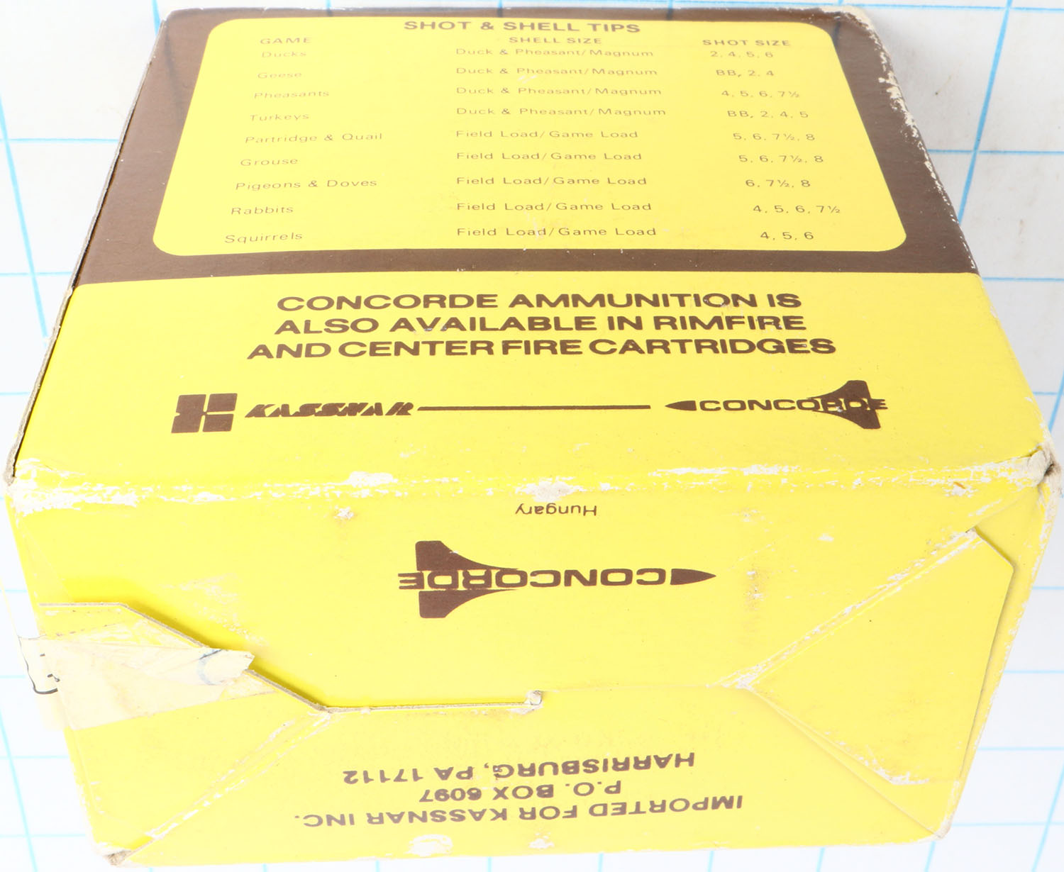 Concorde Duck & Pheasant, 12ga., 1pc., Full, shot size 7 1/2, multi-colored box, box is solid, shells are excellent. Grade: Excellent - Value: 10 to 30