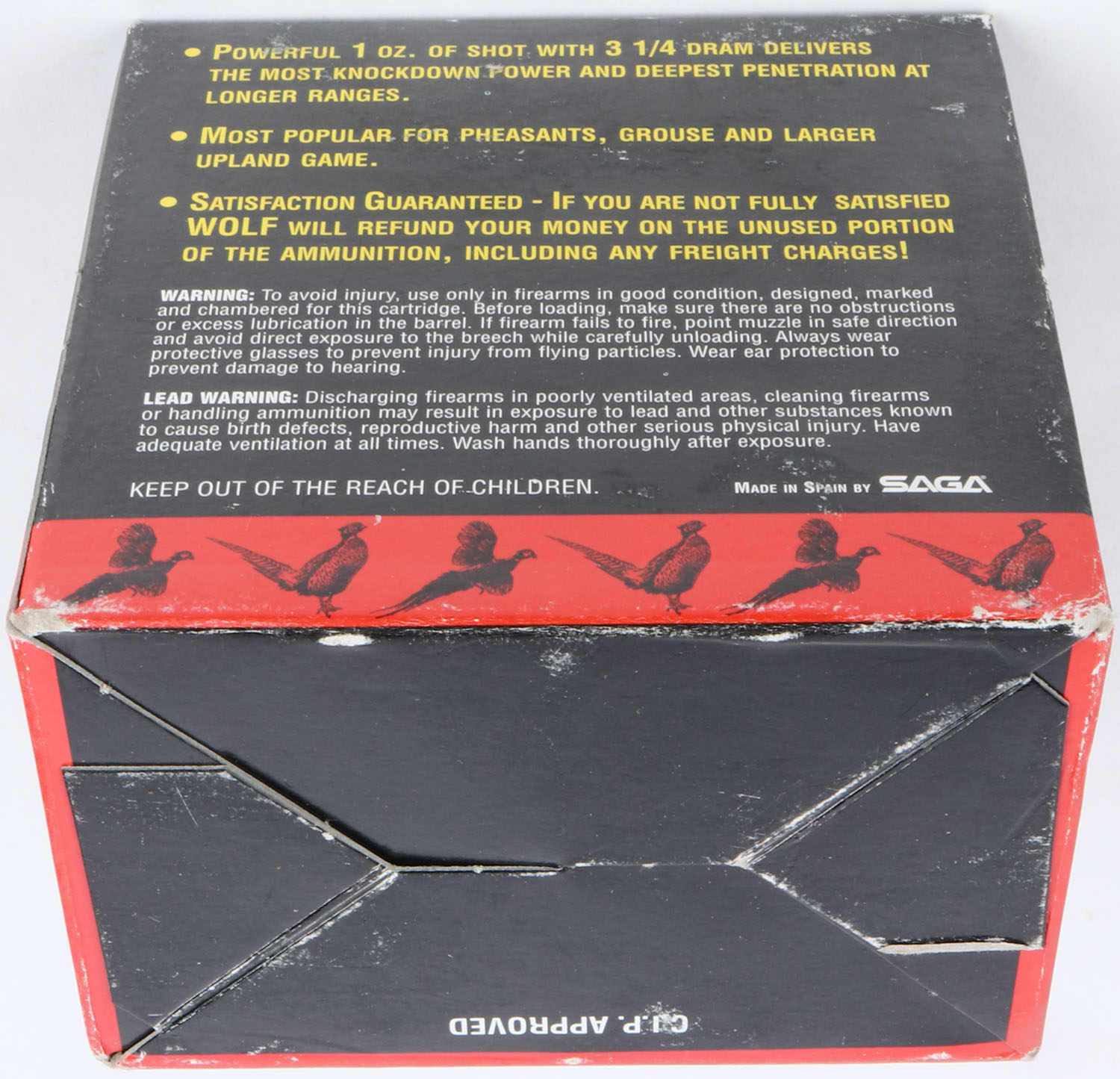 Wolf, Pheasant Load, 16ga., 1pc., Full, shot size 6, multi-colored box, box is very solid with very nice colors, Shells are excellent. Grade: Excellent - Value: 10 to 30