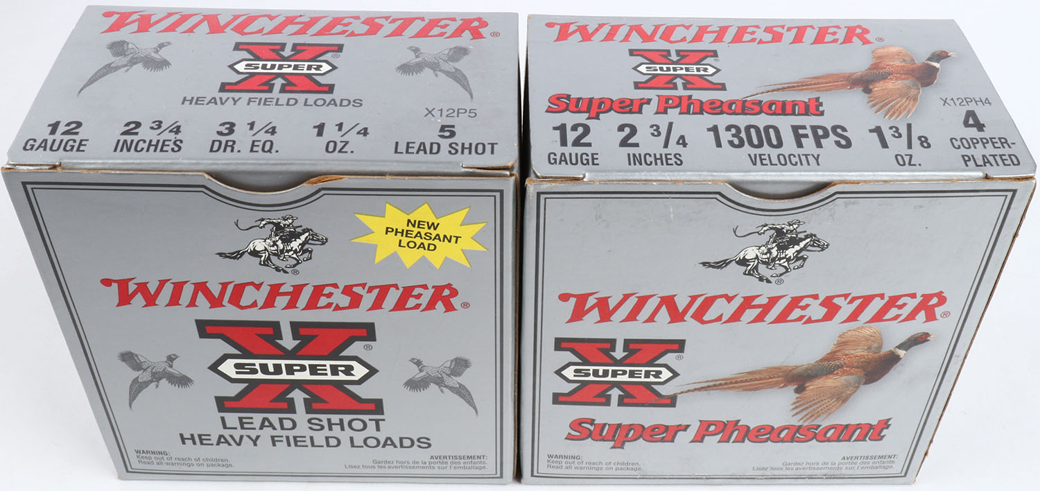 Lot of 2 Winchester, 12ga., 1pc., Appears Full, shot size 5 & 4, multi-colored box. Grade: Excellent - Value: 10 to 30
