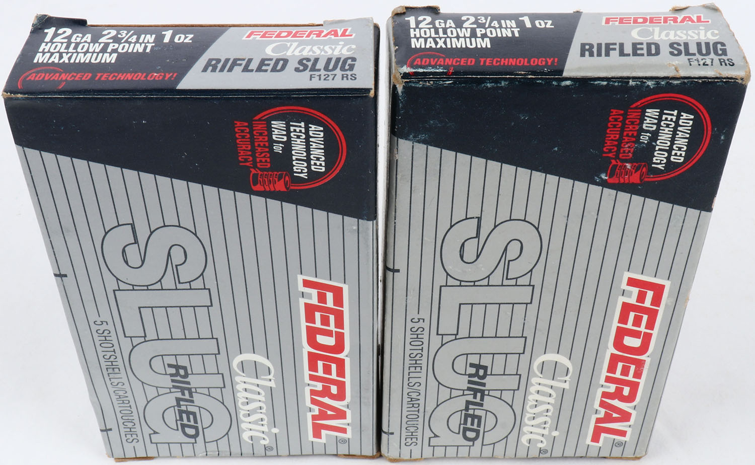 Lot of 2 Federal, 12ga., 1pc., Appears Full, shot size Rifled Slug, multi-colored box. Grade: Excellent - Value: 10 to 30
