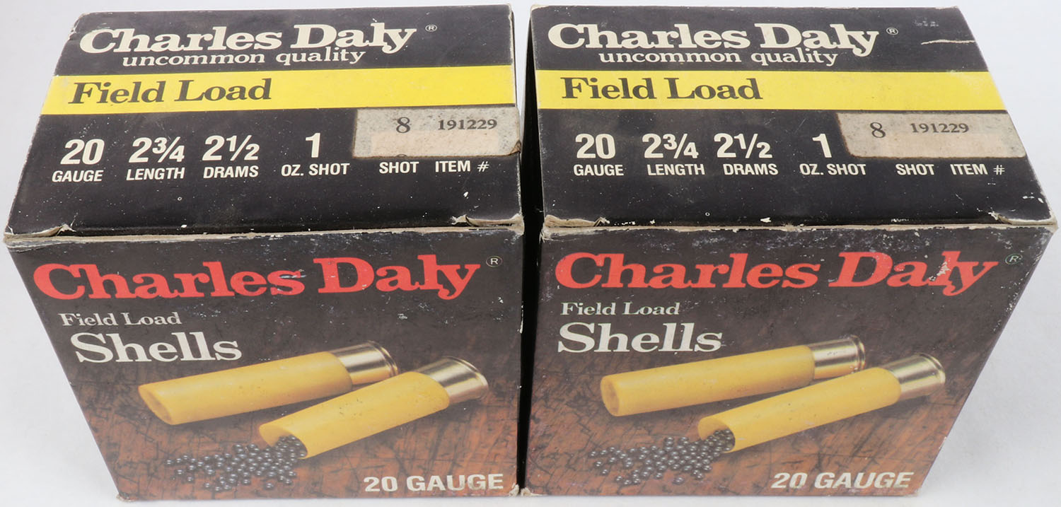Lot of 2 Charles Daly, 20ga., 1pc., Appears Full, shot size 8, multi-colored box. Grade: Excellent - Value: 10 to 30