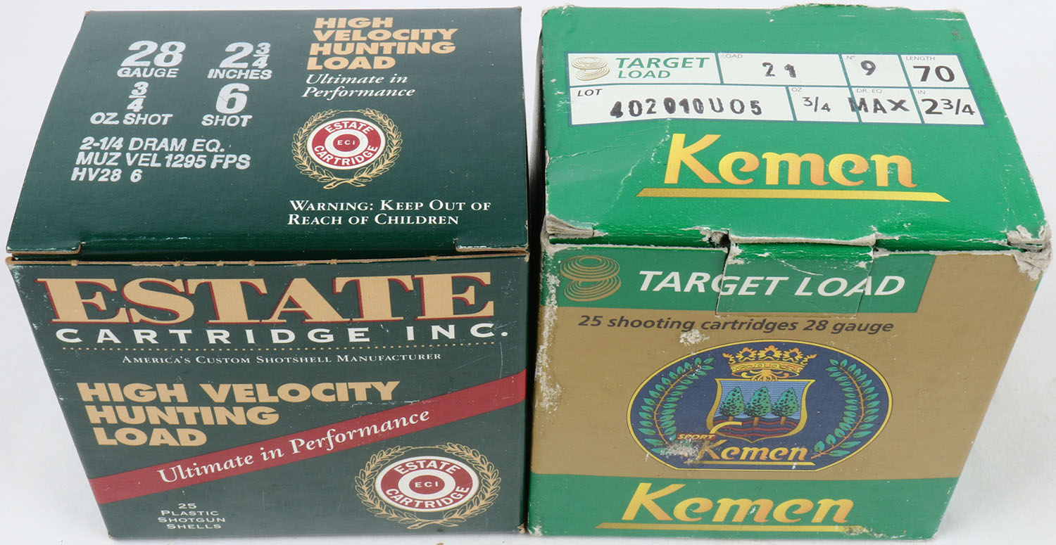 Lot of 2 Estate/Kemen, 20ga., 1pc., Appears Full, shot size 9 & 6, multi-colored box. Grade: Excellent - Value: 10 to 30