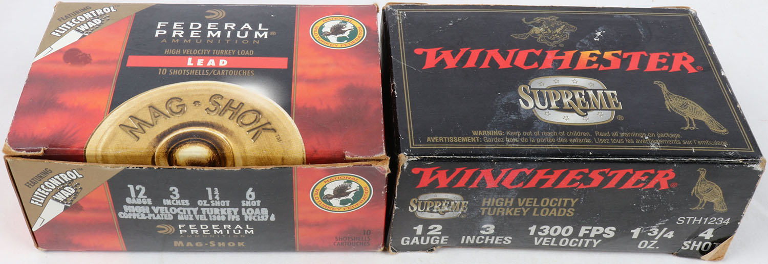 Lot of 2 Winchester/Federal, 12ga., 1pc., Full/Partial, shot size 6 & 4, multi-colored box. Grade: Excellent - Value: 10 to 30