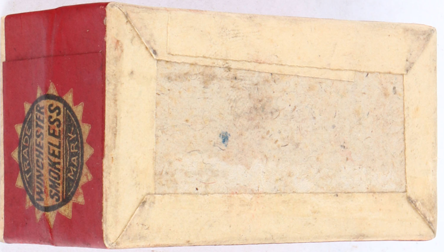 Winchester, Smokeless Cartridges, .22 Long Rifle, RR: WRA-115 LR-15b, FULL & SEALED, 2pc. Buff box with red top & side sealing labels, box is solid with excellent to minty color, very minor edge wear, corners are sharp, very minor staining to bottom, labels are intact. Grade: Excellent ++ - Value: 50 to 250