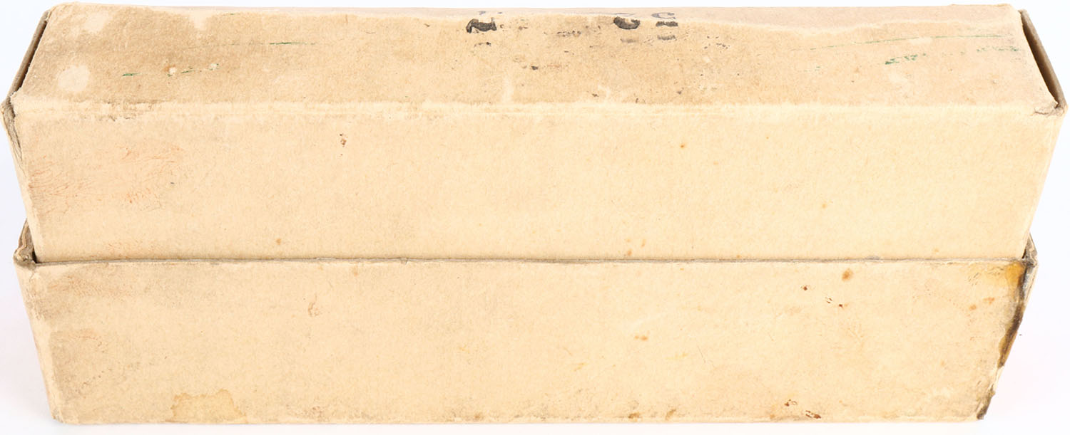 Winchester, Non-Mercuric Staynless, 40-65, 260 Grain Soft Point Bullets, Full, 2pc. Buff box with orange labels, box is solid with excellent color, some edge & corner wear, minor chipping to front label, vertical seam splits on right end of box have been repaired, labels are intact, ammo is excellent. Grade: Excellent - Value: 50 to 150