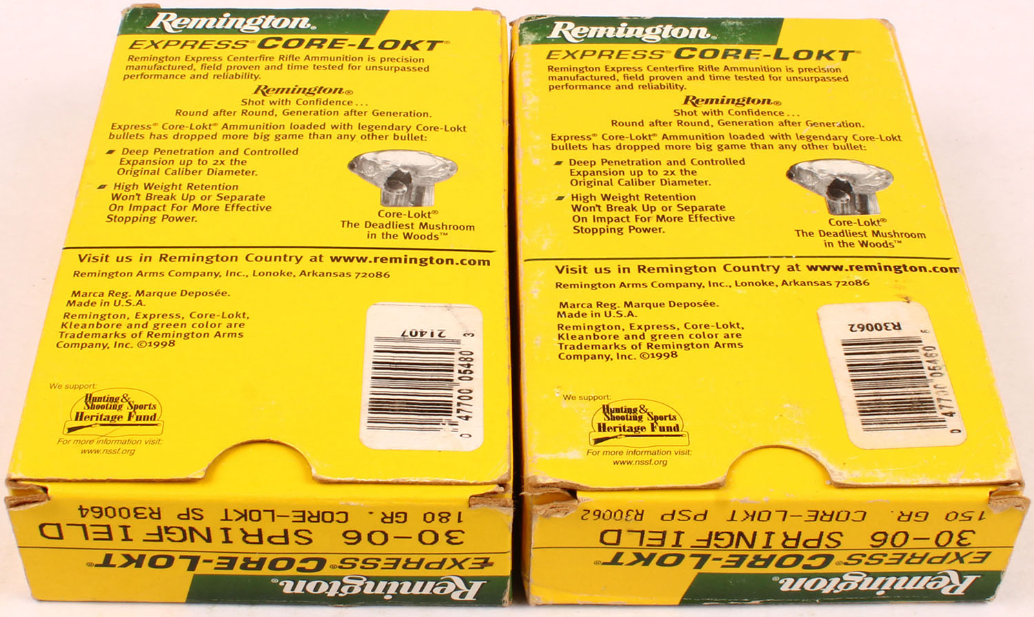 Lot of two, Remington, 30-06, one box is partial, 37 total Rds., ammo is very good to excellent. Grade: excellent - Value: 30 to 60