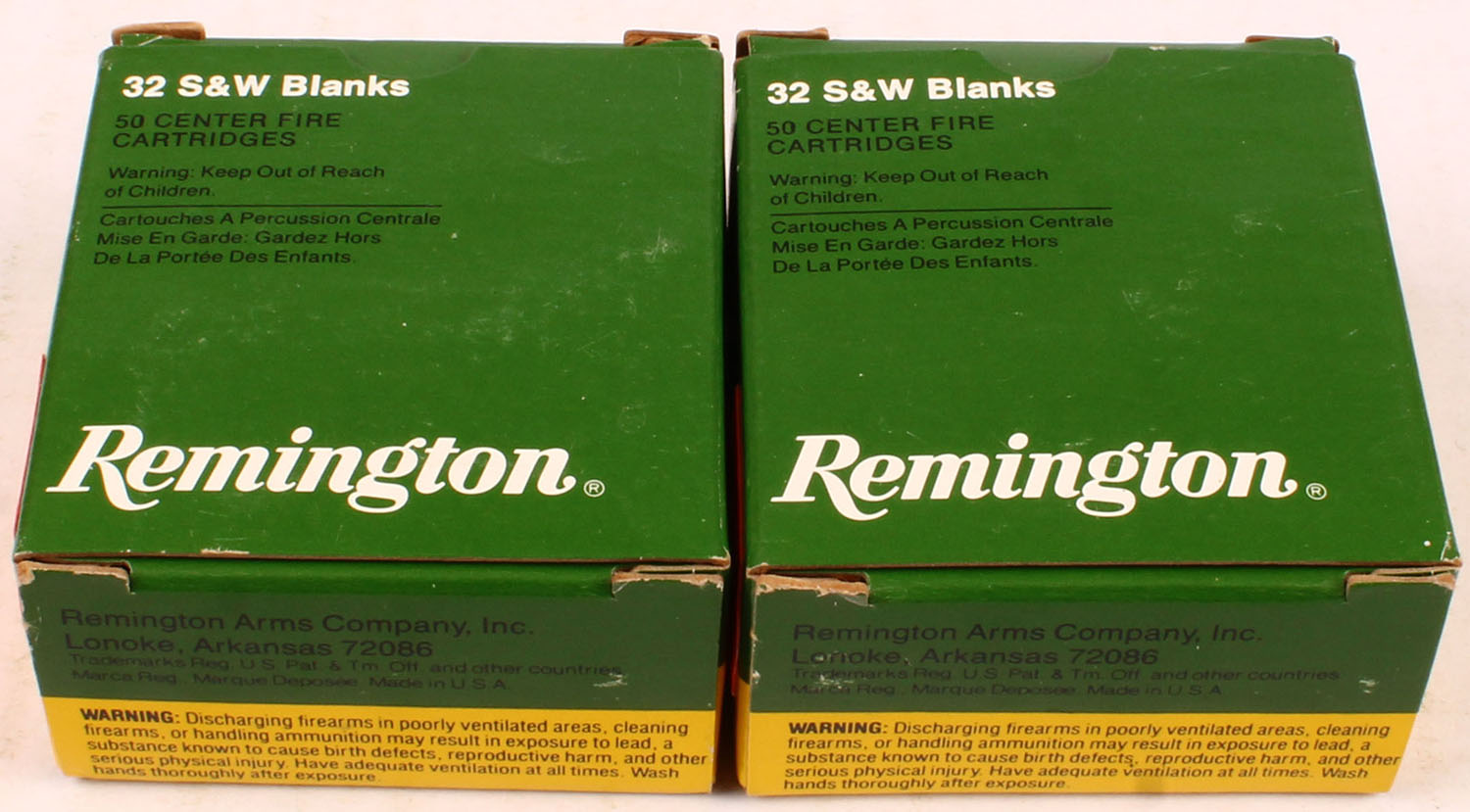Lot of two, Remington, .32 S&W Blanks, 1pc, Both Full, 100 total Rds., boxes are solid, ammo is excellent. Grade: Excellent - Value: 20 to 100