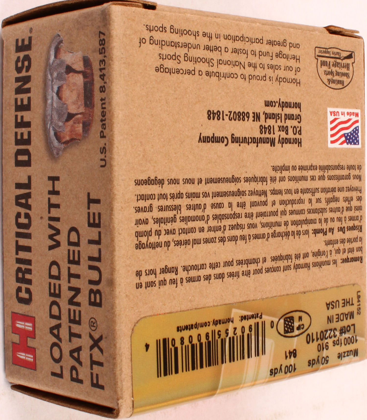 Hornady, Critical Defense, 380 Auto, 90 Grain FTX, Full, 1pc. multi-colored box, box is solid with excellent color, Ammo is excellent. Grade: Excellent ++ - Value: 20 to 60