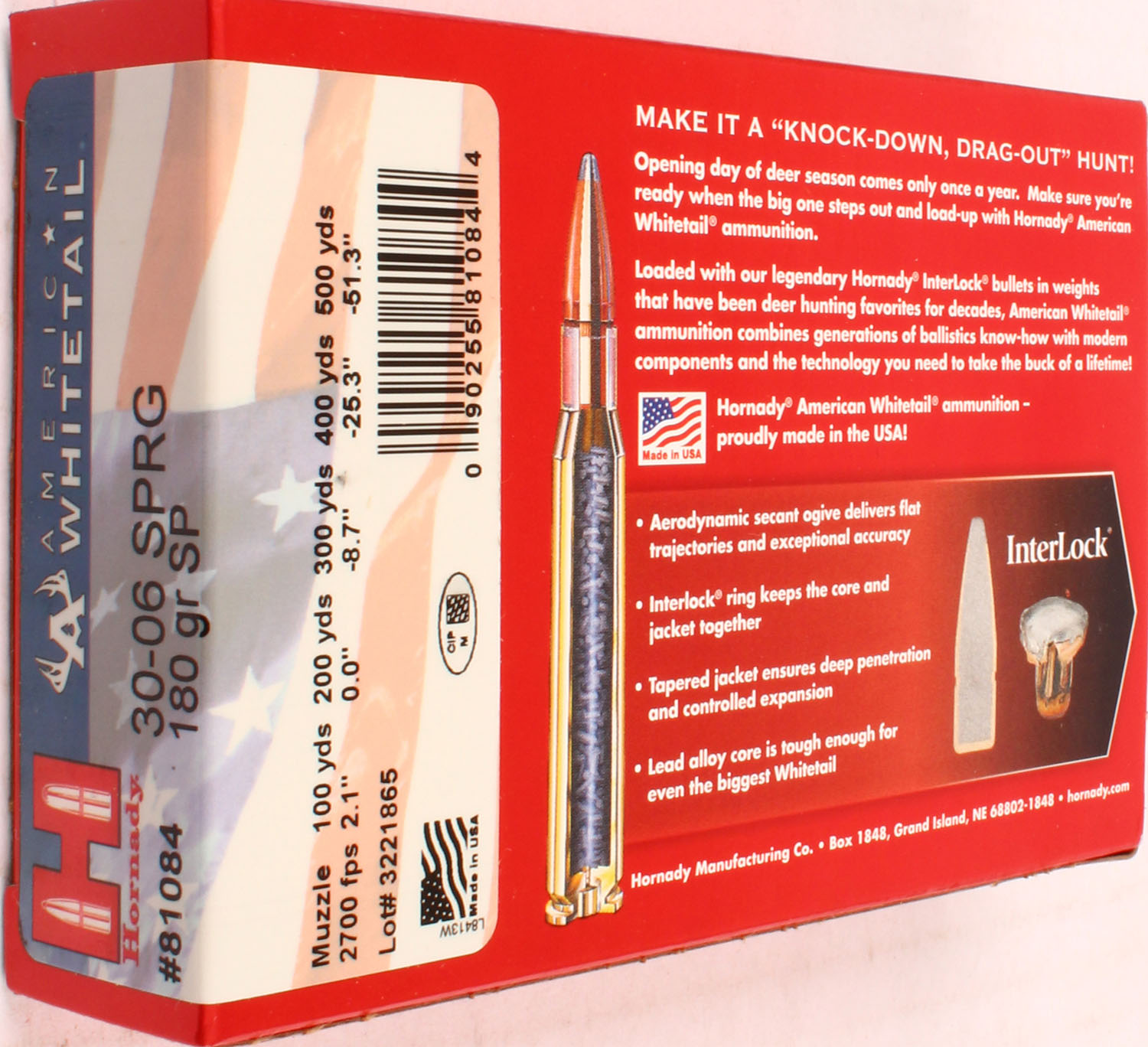 | Hornady, American Whitetail, 30-06 SPRG, 180 Grain SP, Full, 1pc...