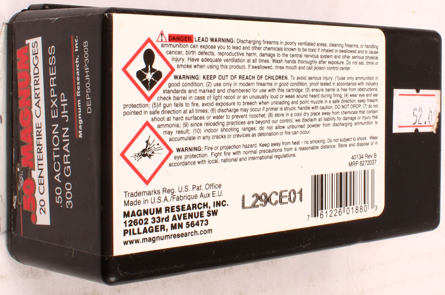 | Magnum Research, .50 AE, 300 Gr. JHP, 1pc, Full, black box with ...