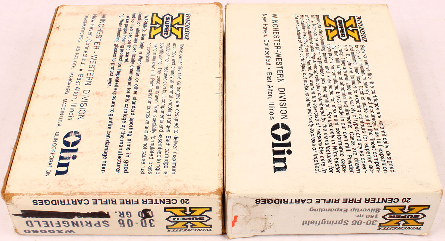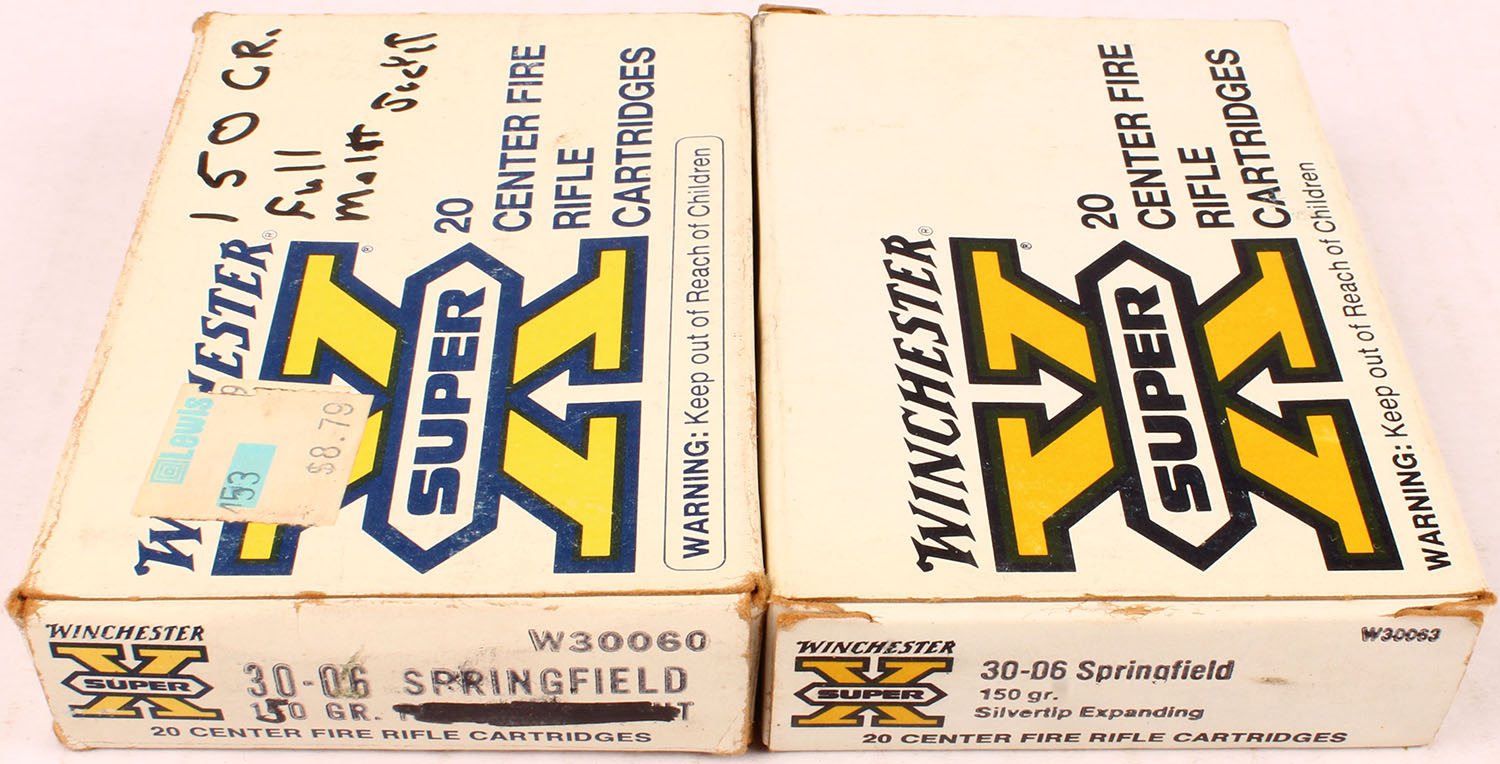 Winchester, Lot of (2) .30-06 boxes, both boxes are full of mixed ammo, boxes are solid with excellent color, ammo is excellent. Grade: Excellent - Value: 10 to 50