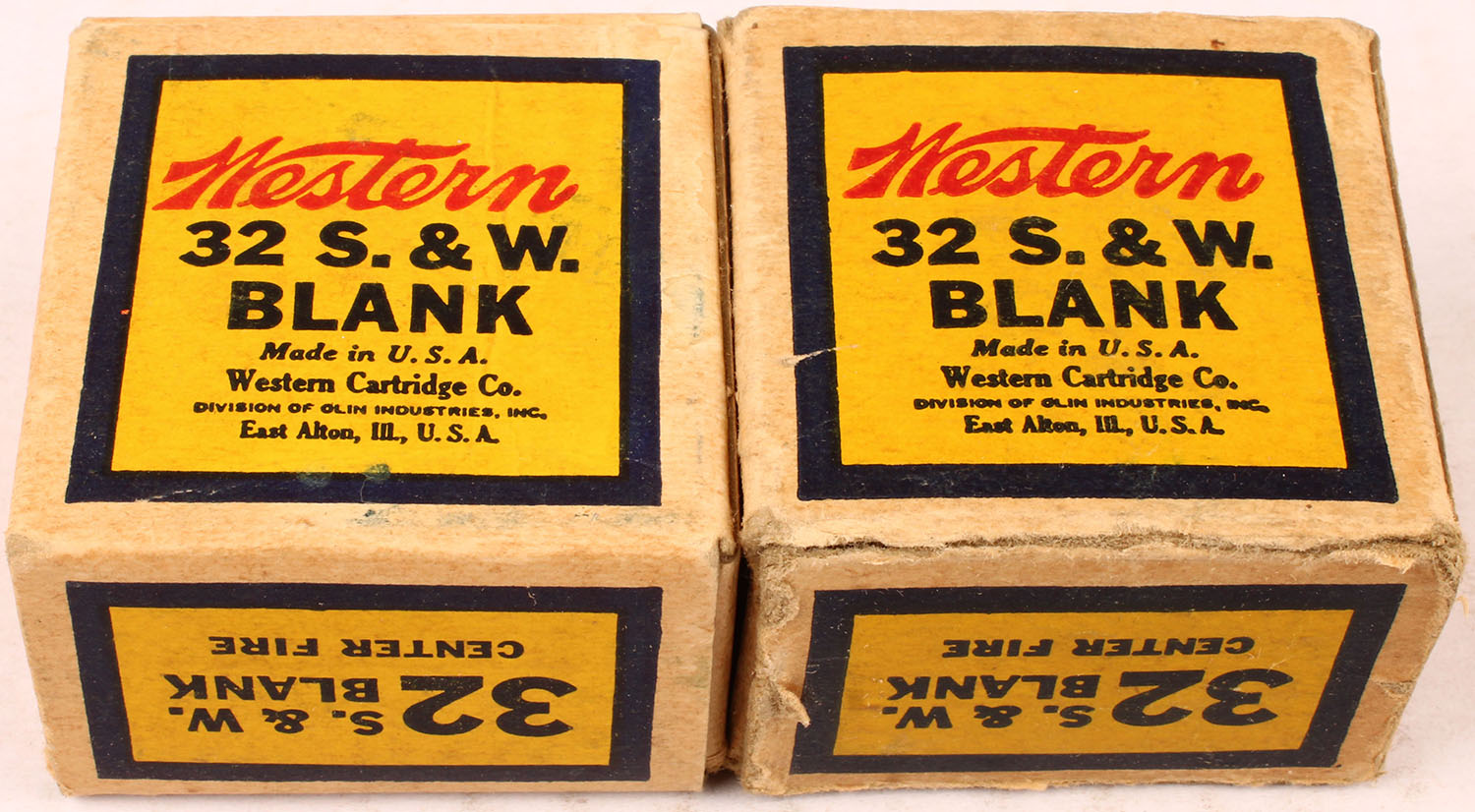 Western, Lot of (2) .32 Smith & Wesson Blanks, both boxes are full, boxes are solid with very good color, ammo is excellent. Grade: Very Good - Value: 10 to 50