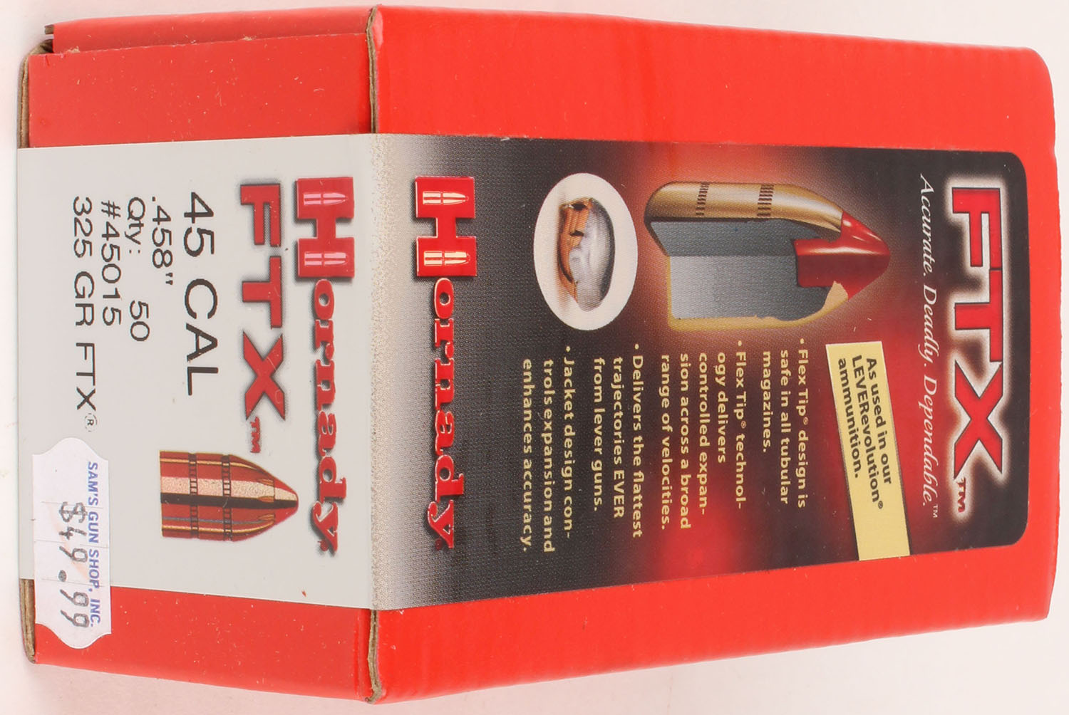 Hornady, 45 Cal., 325 Grs. FTX, Full, 1pc., Multi-colored box, box is MINT with minty color. Grade: Excellent ++ - Value: 10 to 60