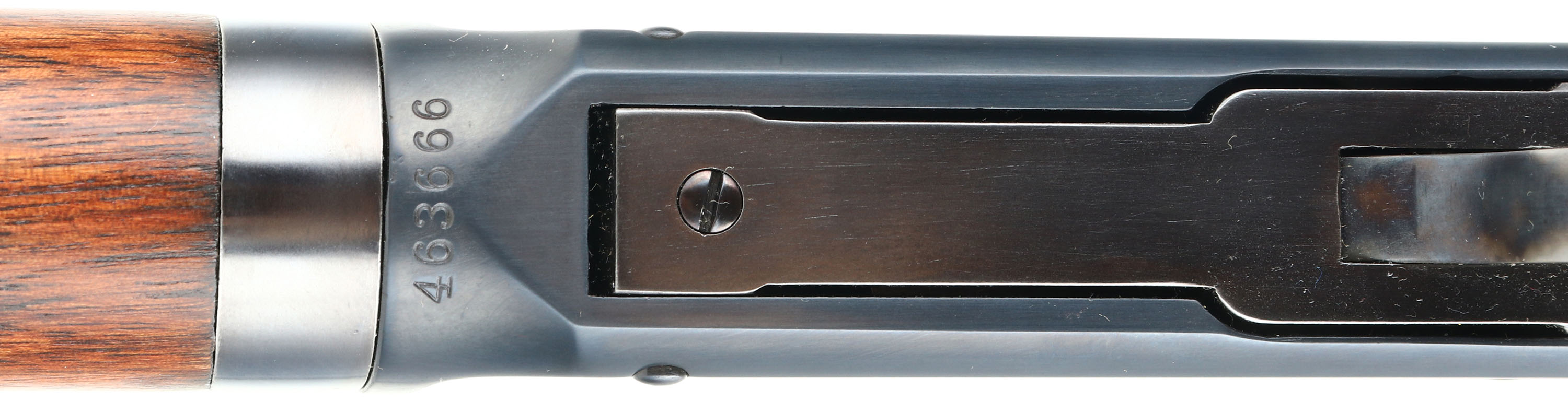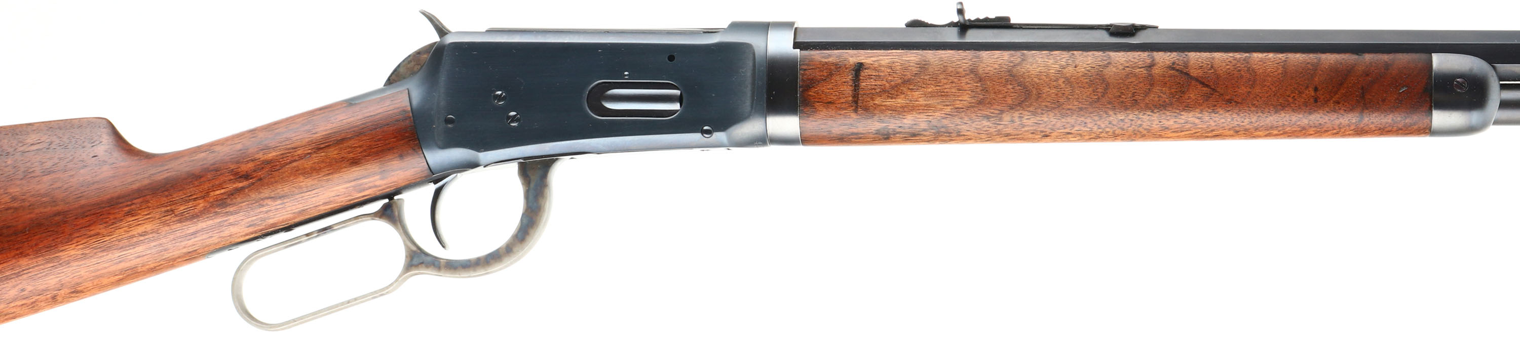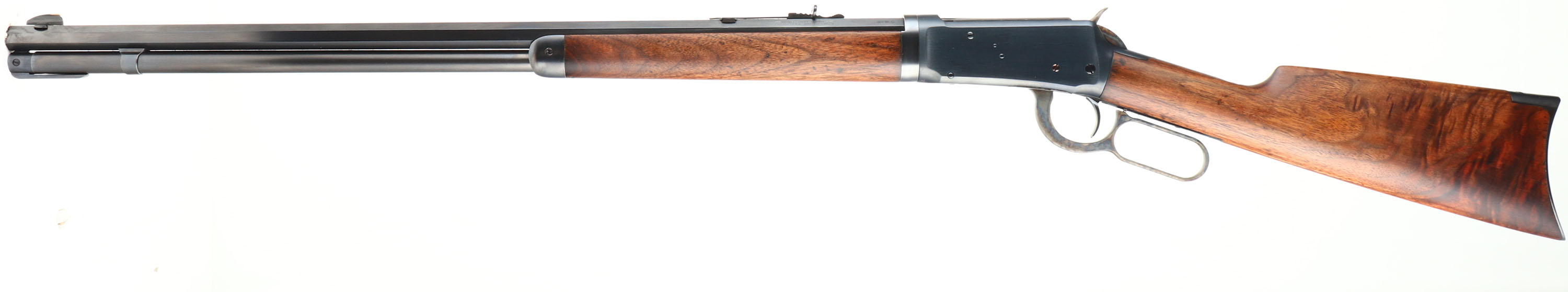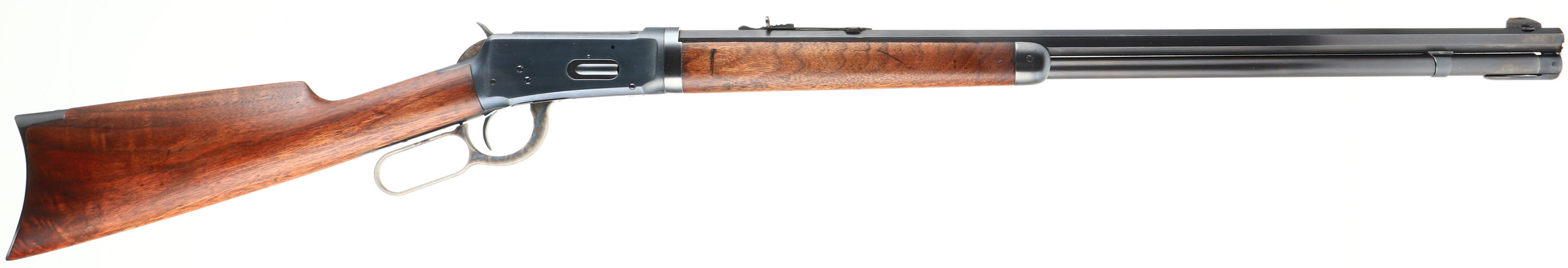 Winchester, Model 1894 TAKE-DOWN, CAL: 32 W.S., MFG: 1910, SN: 463666, Lever Action Rifle, 26'' Octagon barrel. Full mag. This gun was fully & professionally refinished. The factory straight grip wood stocks are very good & solid. They carry a thin refinish, with the remains of very few small handling marks. The restored metal blue finish rates 99% overall. The case-hardened lever & hammer display strong case-colors. Bore is very good. The barrel holds an adjustable rear & W.F. Sheard long blade front sights. Buttstock carries crescent metal buttplate. A nice looking restored rifle. FFL or C&R Req. - Value: 1000 to 2000