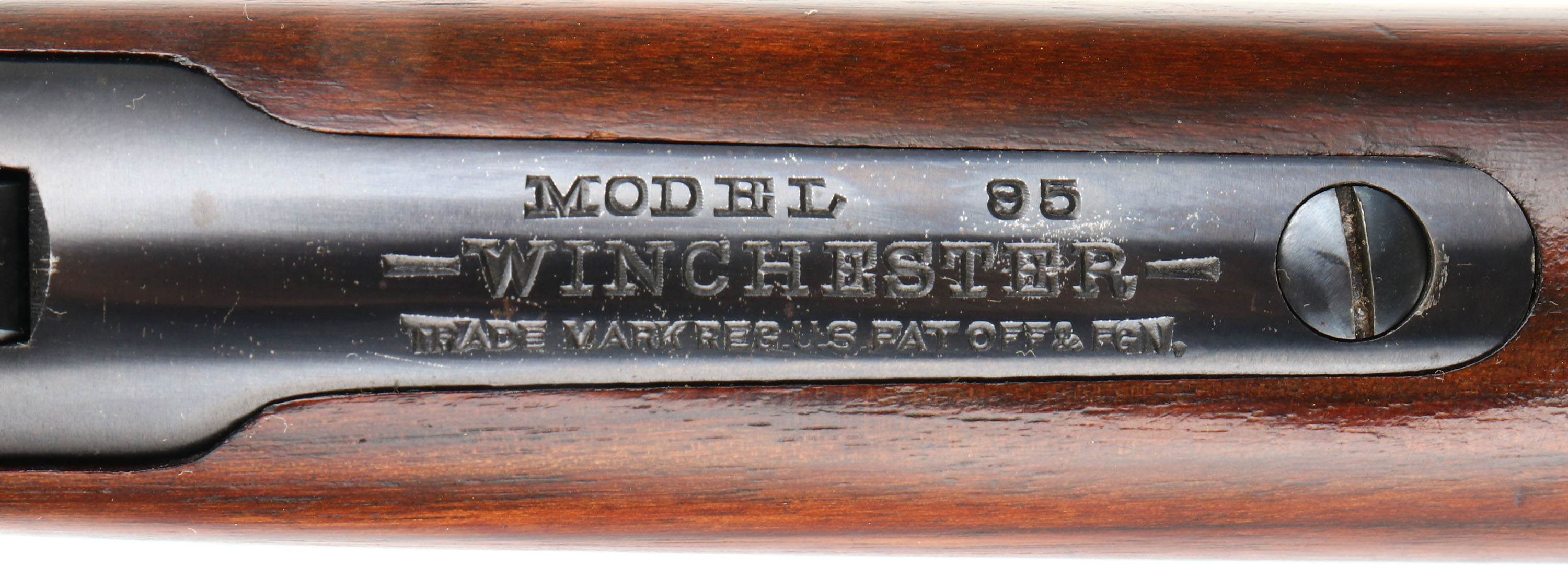 FANTASTIC Winchester Model 1895 Take-down, CAL: marked 30 GOV'T-06, MFG: 1922, SN: 415495, Lever Action Rifle, 23 7/8'' Tapered round barrel. The factory straight grip wood stock & schnabel forend, with the ebony inlay, are excellent. The finish is excellent, with very few minor handling marks. The original metal blue finish rates 99% on the barrel, 97% on the receiver lever & box mag. Top of receiver collar is factory matted. Bore is excellent & bright. The rifle is fitted with a Climbing Lyman #21 receiver sight, a dual leaf folding rear sight & a small blade front sight. Buttstock carries a correct period & possibly factory installed Winchester solid red recoil pad. An overall excellent & very collectible example.* FFL or C&R Req - Value: 5000 to 7000