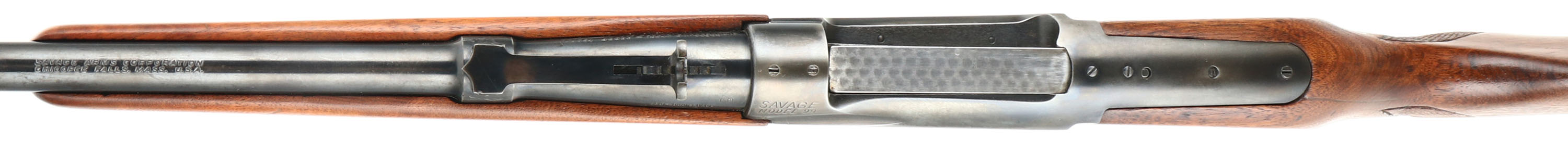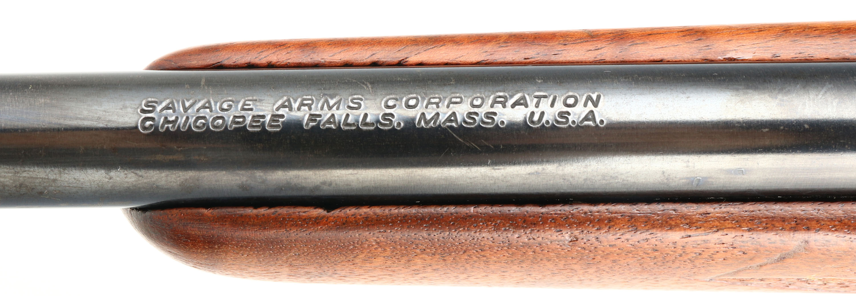 Savage, Model 99, CAL: 250-3000, MFG: 1956, SN: 776361, Lever Action Rifle, 22'' round barrel. The original checkered & capped pistol grip wood stocks are very good & solid, despite large crack repairs & having been sanded & refinished. The stock has a 9'' tight crack repair that runs from the toe to the pistol grip on the right side & another tight 4'' crack repair from comb through to the checkering in the wood. After the repairs, the stock was thinned & reshaped along the belly & comb, especially to the right side. It was then sanded & nicely refinished. There are very few handling marks remaining to the current finish & overall appearance is excellent. The metal blue finish is a combination of original finish & applied finish, with 95% coverage on the barrel, 50% on the receiver. The case-hardened lever has faded mostly gun metal gray. Bore is excellent. The barrel holds an adjustable rear sight & ramp elevated blade front sight. Grooved metal buttplate. Sling studs. Great overall appearance. FFL or C&R Req. - Value: 300 to 600