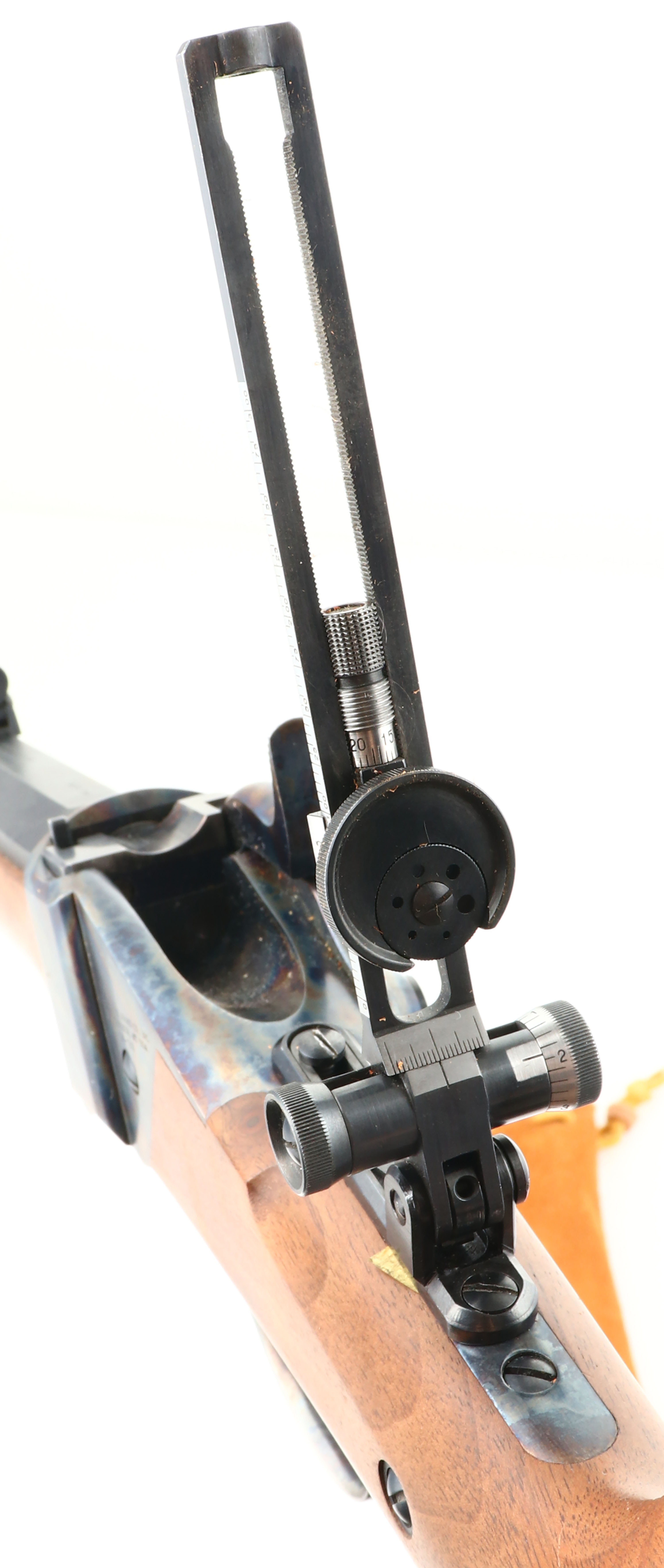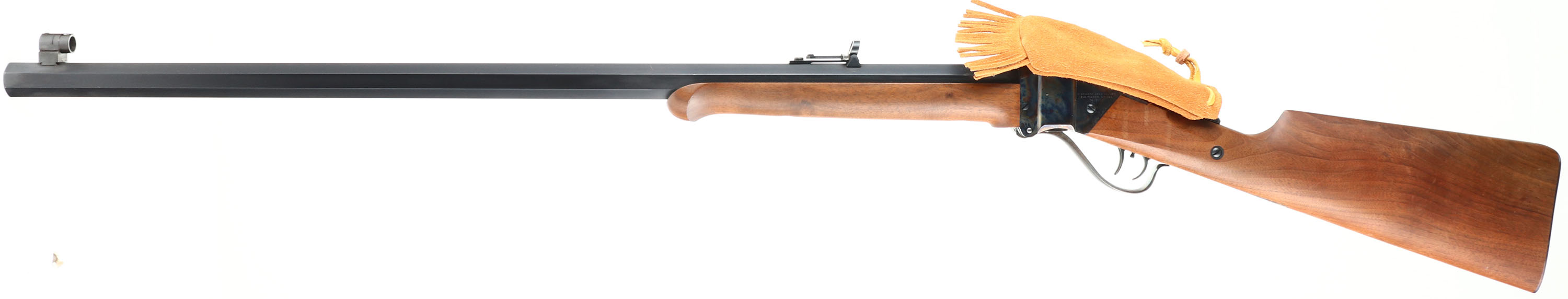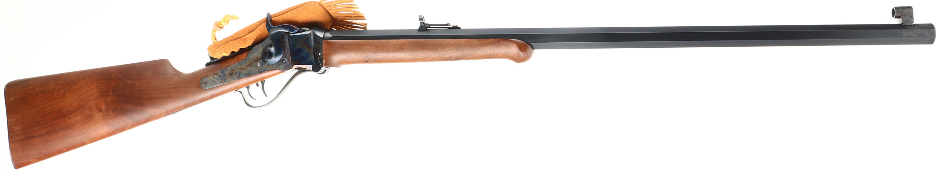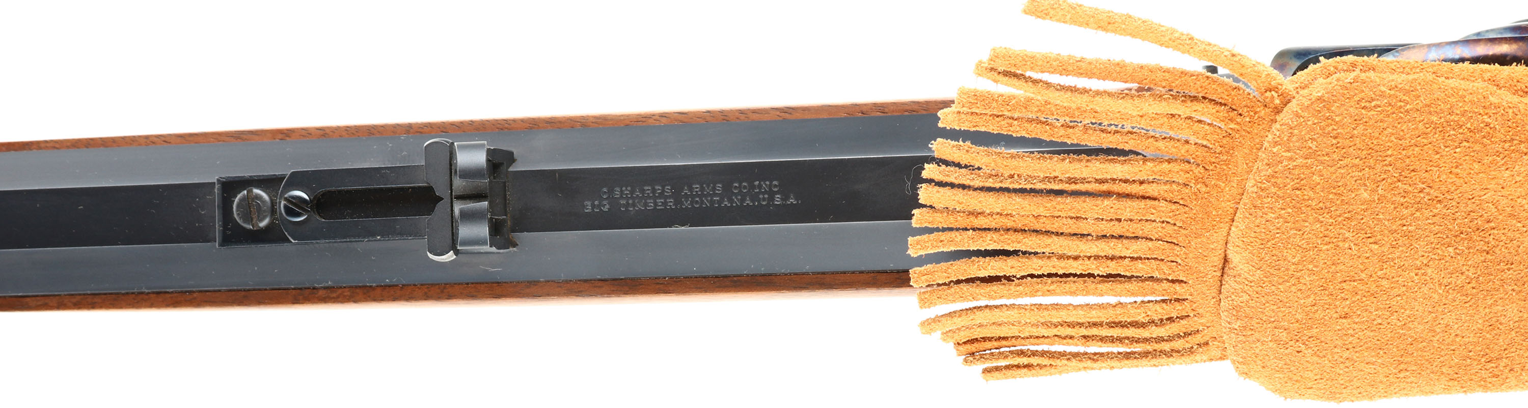 C. Sharps Arms Co, Model 1874, CAL: marked .40 2 1/10, MFG: Modern, SN: 74-911, Lever Action Falling Block Rifle, 30'' Octagon barrel. From C.Sharps Arms Co: ''Arguably the most famous single shot rifle of the American West, the 1874 Sharps falling block rifle story began in 1848 when Christian Sharps patented his first breech-loading rifle & carbine design using paper cartridges ignited by a separate musket cap. Throughout the 1850s & 60s, the Sharps breech-loading rifle became popular with military & civilian users alike. As metallic cartridges were developed & became available the venerable breech-loading Sharps was a perfect candidate for conversion to the metallic cartridges of the time. Many of the Civil War Era Sharps rifles & carbines were converted to early metallic cartridges. The 1874 Model was introduced by the Sharps Rifle Co. as the first purpose-built rifle to house the new breed of powerful metallic cartridges. It quickly showed itself as being a rugged & reliable rifle perfectly suited to the rigors of the frontier. This reputation led to the 1874s nickname & C. Sharps Rifle Co. Inc. trademark of ''Old Reliable''. The C. Sharps Arms Co. Inc. continues the legacy of the original C. Sharps & Co. & Sharps Rifle Co. by building heirloom quality reproductions of the Sharps 1874 rifles like the rifle offered in this lot. The original straight grip wood stocks, with schnabel forend, are excellent. There are minor contusions & handling marks to the original finish. The factory metal blue finish on the barrel rates 99%. The receiver, hammer & lever are case-hardened, retaining vivid case-colors. Bore is excellent. Fitted with a factory long range rear tang sight, while the barrel carries a full buckhorn/sliding ladder rear sight & globe front sight. The front sight can be modified with different reticles. Stock carries a case-colored checkered metal buttplate. This is a fabulous & beautifully made, high quality reproduction of an original 1874 Sharps rifle. FFL Req. - Value: 3000 to 4000