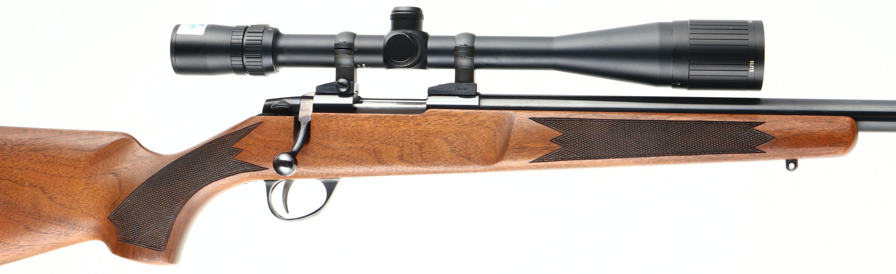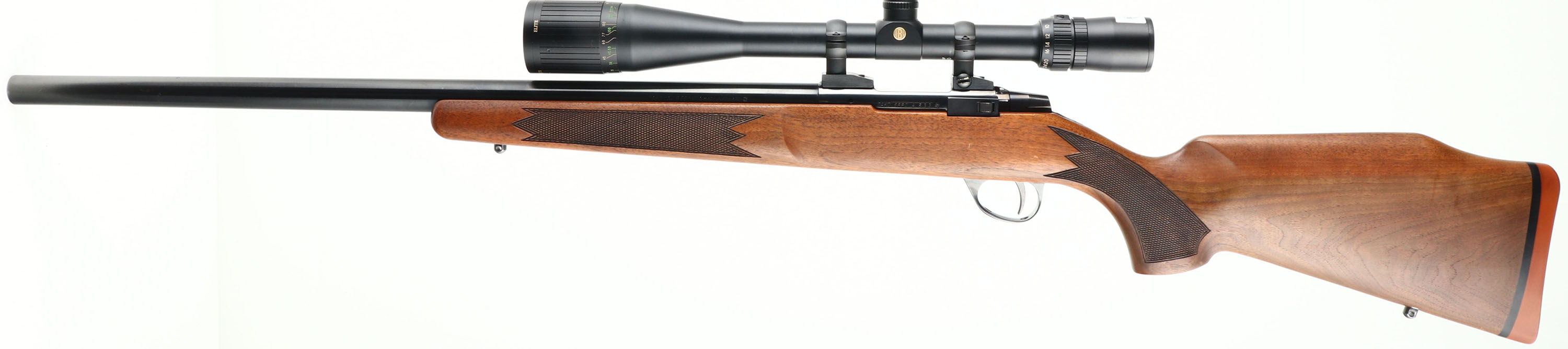 SAKO, Model AI, CAL: 6 PPC USA, MFG: Late 1980's, SN: A533, Bolt/Single Shot Action, 23 1/2'' bull barrel. The original checkered & flat pistol grip Monte Carlo stock is excellent. There are minor handling & storage marks to the original finish. The original metal blue finish rates 98% overall. Bore is minty. The receiver holds a Burris Elite 6-24x40 scope. No open sight provisions. Sling studs. Stock has a SAKO solid recoil pad. A great small caliber bench target or hunting rifle. FFL Req. - Value: 1000 to 1700