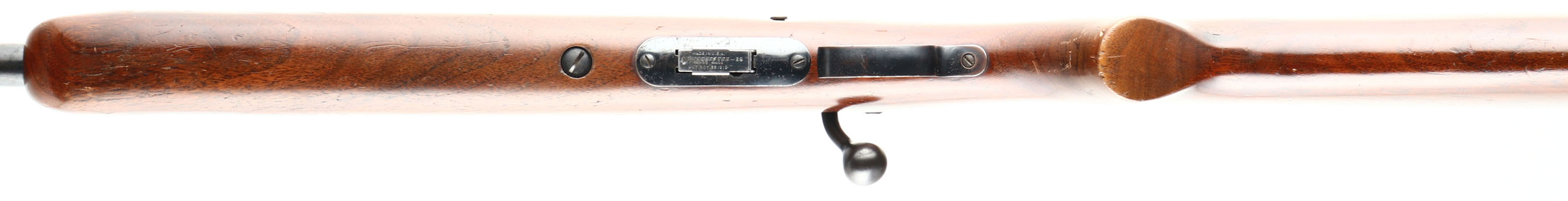 Winchester, Model 69, CAL: 22 S,L, & LR, MFG: 1935-63, SN: NONE, Bolt Action Rifle, 25'' barrel. The original flat pistol grip wood stock is very good, with original finish showing thinning, scratches, scrapes & contusions. The original metal blue finish rates 85% overall, with some speckling on the barrel. Bore is very good. The rifle is fitted with an adjustable rear sight & small blade front sight. Buttstock carries a Winchester marked plastic buttplate, with a small missing chip of wood from the stock at the top edge of the buttstock. Comes with original ''Winchester'' ''69'' marked magazine. A very nice original example. FFL or C&R Req. - Value: 300 to 600