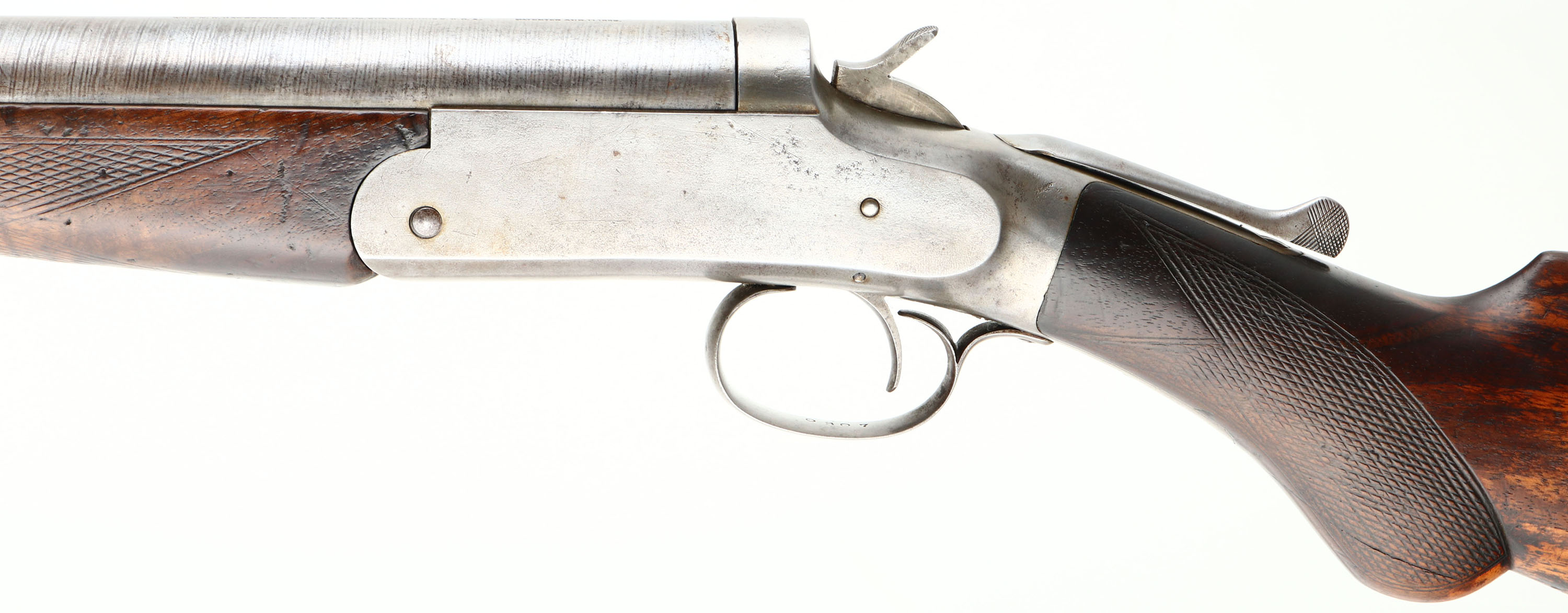 W.H. Davenport Fire Arms Co., CAL: 8 Ga, MFG: 1897-1910, S/N: 0307, Break Single, 35 3/4'' twisted steel barrel. The checkered round knob semi-pistol grip wood stock is very good with small nicks, dings, scratches, & wear from use/age, lightly worn checkering at wrist & worn checking at forend. The metal on the barrel appears to have been polished & is a gun metal, twisted steel pattern still present on about half of the barrel. The metal on the receiver is a gun metal gray with small spots of brown/gray patina. Top of barrel is marked ''THE W.H.DAVENPORT FIRE ARMS CO. NORWICH CONN.U.S.A.'', ''PATENTED AUG.11.1896''. Bore is very good with light roughness. Barrel holds a bead front sight. Stock carries a checkered hard rubber buttplate. Lockup has a small amount of play. LOP: 14 1/8'', DAH: 2 1/2'', DAC: 2''. Twisted steel barrels are not safe to shoot smokeless loads or steel shot out of. FFL OR C&R Req. - Value: 1500 to 3000