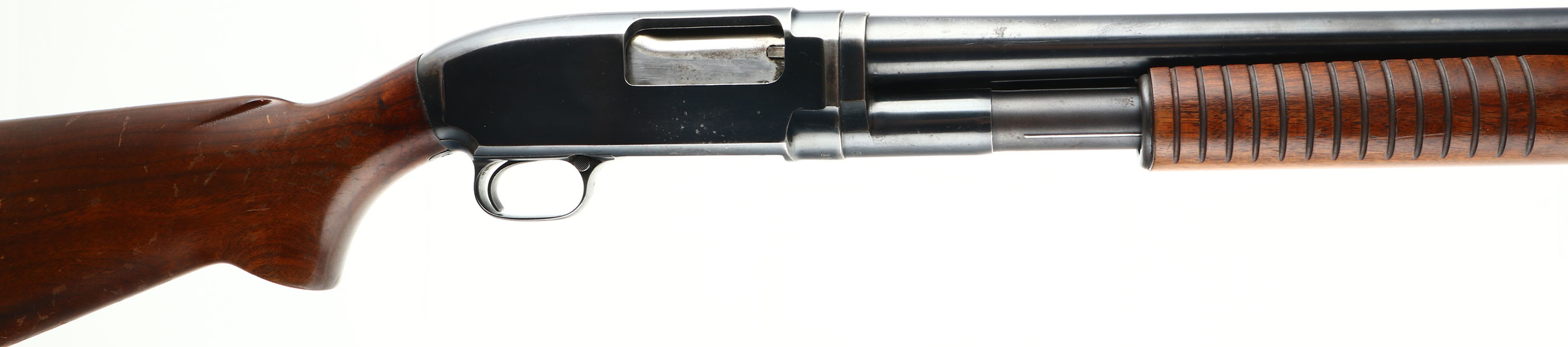 Winchester, Model 12 Heavy Duck, CAL: 12 GA, MFG: 1953, SN: 1520708, Pump Action Shotgun, Choke: Full, 3'' Chamber, 30'' Barrel. The original flat pistol grip wood stock & long corncob forend are excellent, displaying numerous dings, scrapes & scratches the original finish. The original metal blue finish rates 90% on the barrel, 80% on the receiver & mag, with some light speckling. Bore is excellent. Single front bead. Buttstock carries a solid Winchester recoil pad. LOP: 13 1/2'' overpad. FFL or C&R Req. - Value: 500 to 800