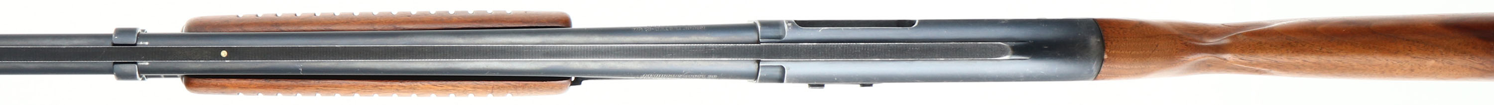 J.C. Higgins, Model 20, CAL: 12 GA, MFG: 1946-61, SN: None, Pump Action Shotgun, J.C. Higgins Power Pac Choke, 2 3/4'' Chamber, 22 1/4'' Ventilated rib barrel. The original capped pistol grip wood stock & long corncob forend are excellent, displaying a few minor scrapes & scratches to the original finish. Blank silver initial shield in belly of the stock. The original metal blue finish rates 85% on the barrel, 80% on the receiver, with the trigger guard worn silver. Bore is excellent. Has magazine cutoff switch on the left side of the receiver. The rib's middle bead has been smoothed off & a brass front bead. Buttstock carries a ventilated recoil pad. LOP: 13 1/2'' overpad. FFL or C&R Req. - Value: 150 to 300