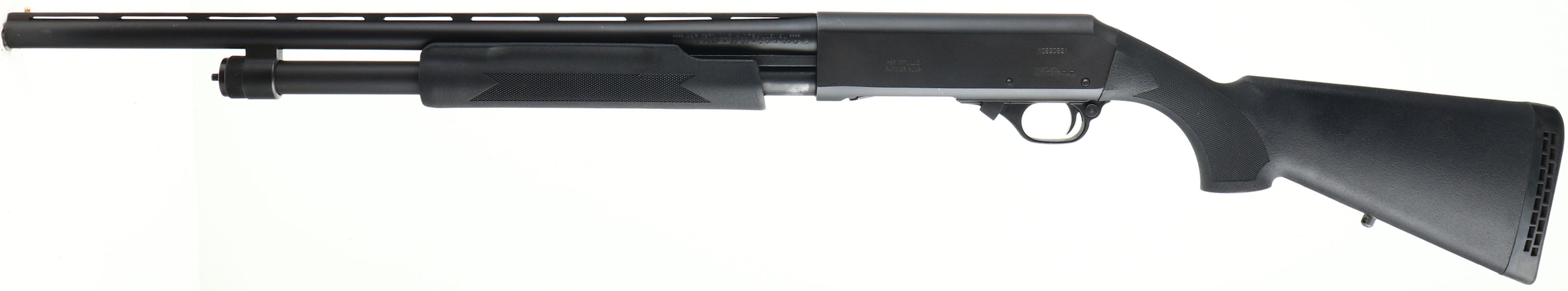 H&R 1871 LLC, Model Pardner Pump, 20 Ga., MFG. Modern, SN: NZ820821, Pump Action Shotgun, 2 3/4'' or 3'' shells, 21'' Ventilated barrel. The original factory checkered & flat pistol grip synthetic stocks are excellent. Original metal finishes are 99%+ overall. Bore is excellent. Single front bead. Ventilated recoil pad. Sling stud. LOP 13'' over pad. Basically a new multipurpose shotgun. FFL Req - Value: 150 to 250
