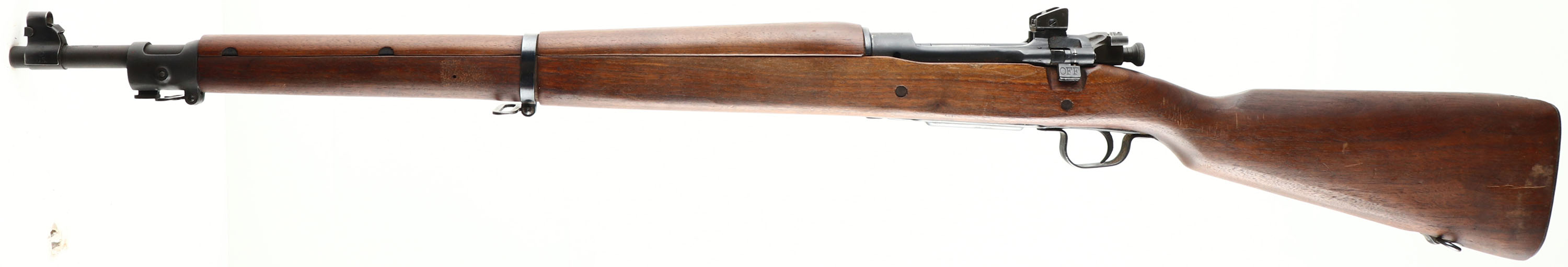 Santa FE. Model: 1903A3. CAL: 30-06. MFG: 1950's-72, S/N: 5002740, Bolt action rifle, 24'' Round barrel. The Semi-Pistol grip Type C stock is very good, near excellent, with light nicks, dings, dents, scratches, & wear from use & age. The parkerized metal finish on the barrel rates 90%, the parkerized metal finish on receiver rates 85% with spots of gun metal gray. Top front of receiver is marked ''CAL. 30-06'', ''SANTA FE'', ''MODEL 1903A3'', S/N. Top of barrel by the muzzle is marked, ''R. A'', Flaming bomb, ''8-44''. Bottom of barrel is marked ''P''. Bore is Near excellent, Bright & mirror like with one small spot of roughness, 2 groove rifling. Blade front sight with hooded protecter, aperture windage & elevation adjustable rear sight, marked on top ''2'' to ''8''. Steel trapdoor Butt plate, has wear. Action is tight and functions smooth. Bottom sling swivels. This rifle is a combination of original GI parts with a New production CAST receiver made by Santa FE later in the 50's through the early 70's, with the receiver being cast and no milled, & it being the locking component for the bolt we DO NOT recommend shooting this rifle until having it inspected by a licensed gunsmith, they have a history of blowing up when firing hot loads because they are cast & not milled like the originals, this would be a nice parts rifle since everything else is original production parts. FFL or C&R Req. - Value: 300 to 600