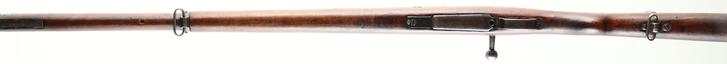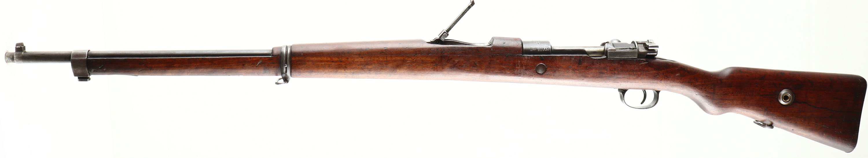 Asfa Ankara German Rebuild. Model: M38. Cal: 7.92x57mm. MFG: 1947. S/N: 1F26941. Bolt Action Rifle. 282/4'' Barrel. The semi pistol grip stock is very good with scratches, gouges, oil darkening & wear from use/age, hole in bottom of stock between barrel bands, hairline crack on bottom of stock that runs from rear barrel band to front barrel band retention spring, bolt disassembly disc in stock, rear barrel band's retention screw has been damaged and would need drilled out to remove it so you can take the stock off. The metal finish rates 70% overall with spots of thinned bluing. Left side of receiver is marked with S/N, top of receiver is marked ''T C'', ''AS FA'', ''ANK ARA'', ''1947'', Crescent Moon/ Stars, left side of receiver rail has a very faint ''GEW 98'' marking, right side of receiver band is marked with faint German proof marks, end of barrel is stamped with importer marks, S/N mismatched bolt, bolt & inside of action still have large amounts of original grease from when it was stored at the arsenal. Bore is very good, slightly dark with strong rifling. Barleycorn front sight, V-notch Tangent rear sight marked 1 to 20. Metal Butt plate with wear & brown patina. Bottom sling swivels, Missing cleaning rod. This rifle appears to originally been a German made Gew 98 pattern rifle that was re-arsenaled in 1947 by the Turks into their standard M38 patter, this was very common for the time since Turkey had many different Mauser rifle and converted them all into one standard pattern for easy of use & logistics. FFL or C&R Req. - Value: 200 to 400