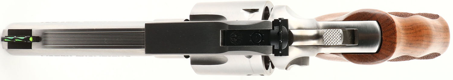 New & Cased Ruger, GP-100 Match Champion, CAL: 10mm, MFG: Modern, SN: 178-75691, Double Action Revolver, 4 1/4'' barrel. The checkered wood grips are excellent. The polished stainless steel finish is excellent. Bore is minty. The frame & barrel hold factory sights, front sight has green fiber rod, rear has shite U. Comes with hard case, owners manual & lock, NOS. FFL Req. - Value: 500 to 750