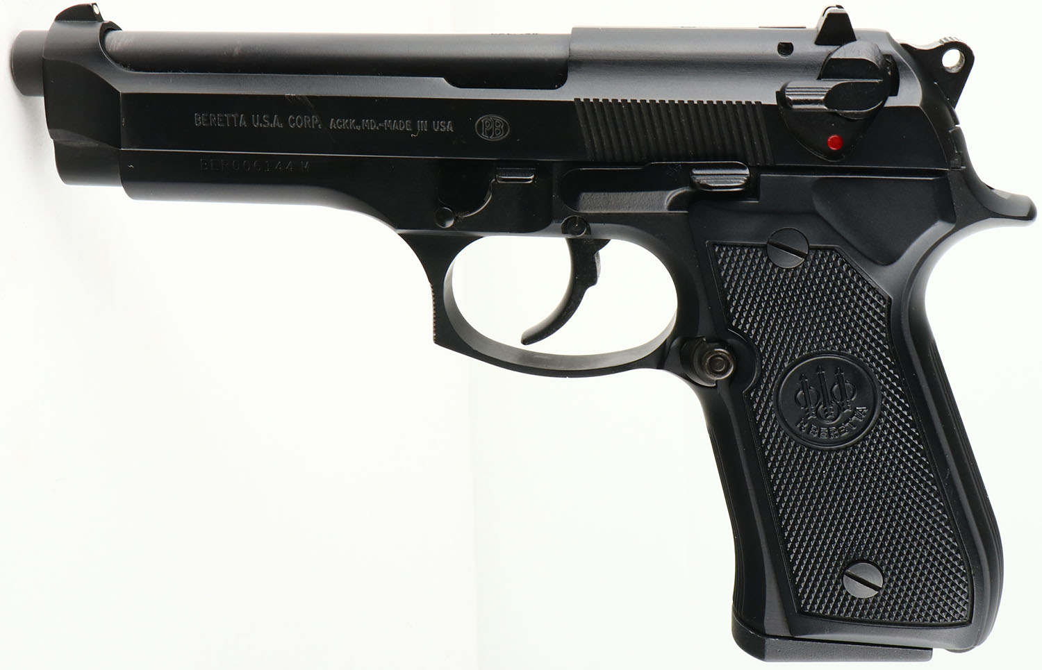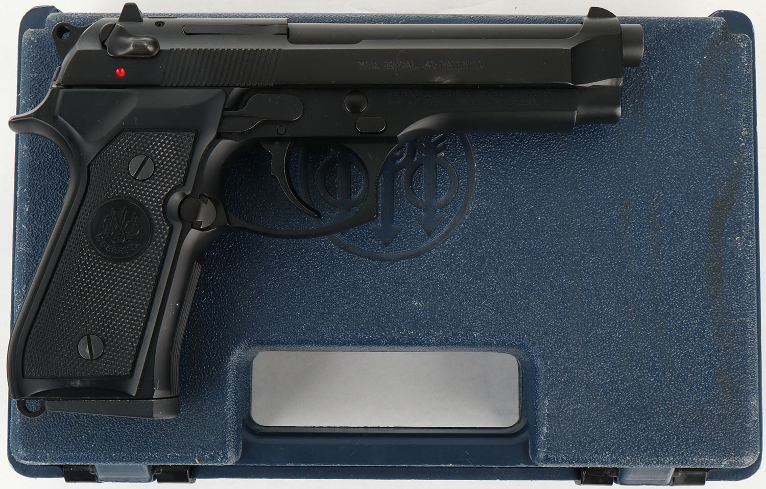 CASED Beretta, Model 96, CAL: 40, MFG: Modern, SN: BER006144M, Semi Auto Pistol, 4 3/4'' barrel. The factory checkered grips are excellent. The factory metal black finish rates 95% overall, with scrapes, dings & blemishes. Bore is excellent. The slide holds a 2 white dot rear sight & a dingle white dot front sight. Comes with (2) 10rd mags. This series of pistols is based on the Beretta 92 series, but chambered in 40 S&W instead of 9mm. FFL Req. - Value: 400 to 800