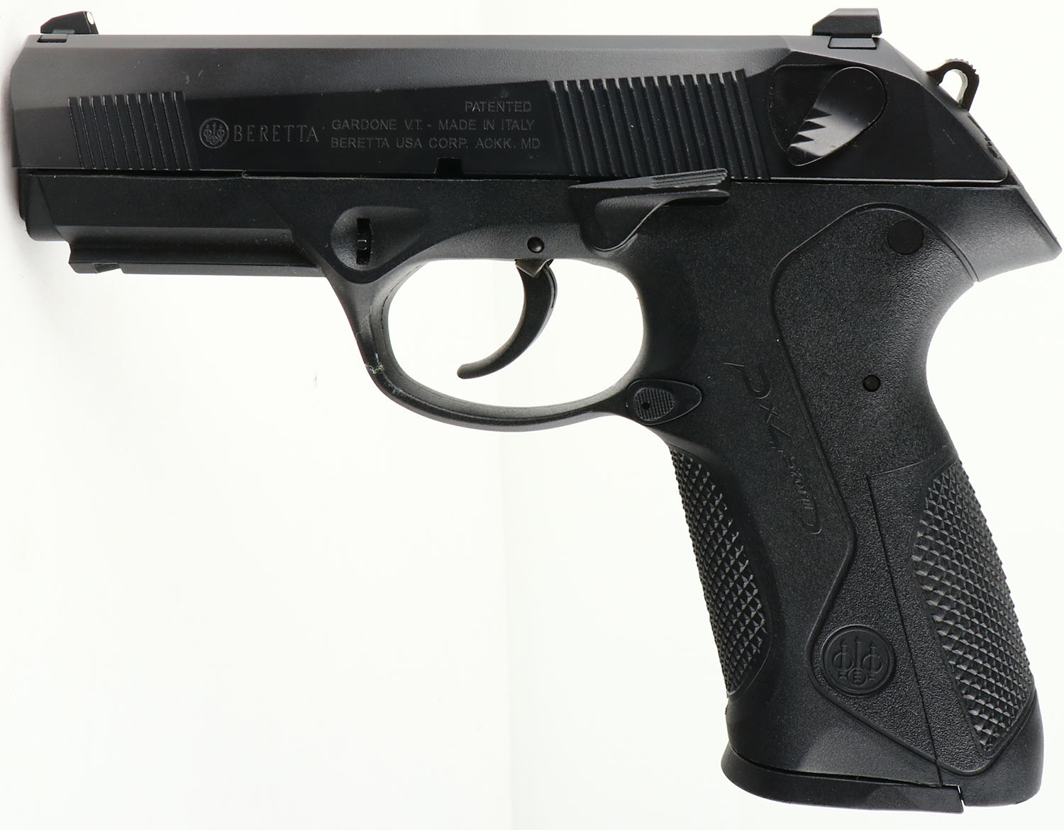 CASED Beretta, Model PX4 Storm, 9mm (9x19), Semi-Auto Pistol, Mfg. modern, Italy, SN: PX171052, 3 7/8'' barrel, The checkered plastic grips are excellent, The original metal black finish is 99%. Mechanically sound. Bore is excellent. White dot front sight & 2 white dot rear sight. Has 2 Original detachable 18rd mags, speed loader & extra grip add on, gun lock. FFL Req. - Value: 400 to 600